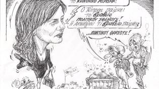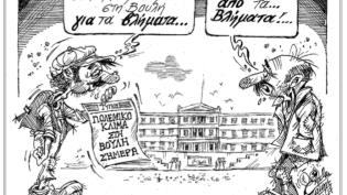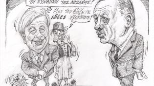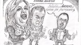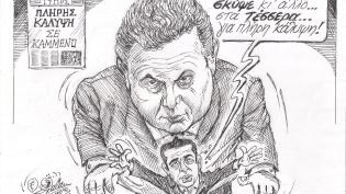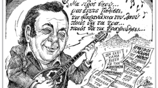 Σκίτσο του Τάκη Χάλαρη με θέμα: "Θεοχαρόπουλος παραπονούμενος"