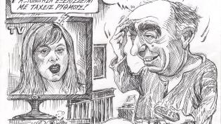 Σκίτσο του Τάκη Χάλαρη με θέμα: "Σαν σε βιντεοταινία"
