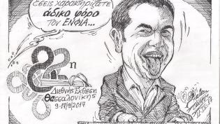Σκίτσο του Τάκη Χάλαρη με θέμα: "Δια χειρός Αλεξίου"