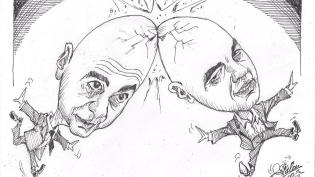 Σκίτσο του Τάκη Χάλαρη με θέμα: "Περί δράματος"