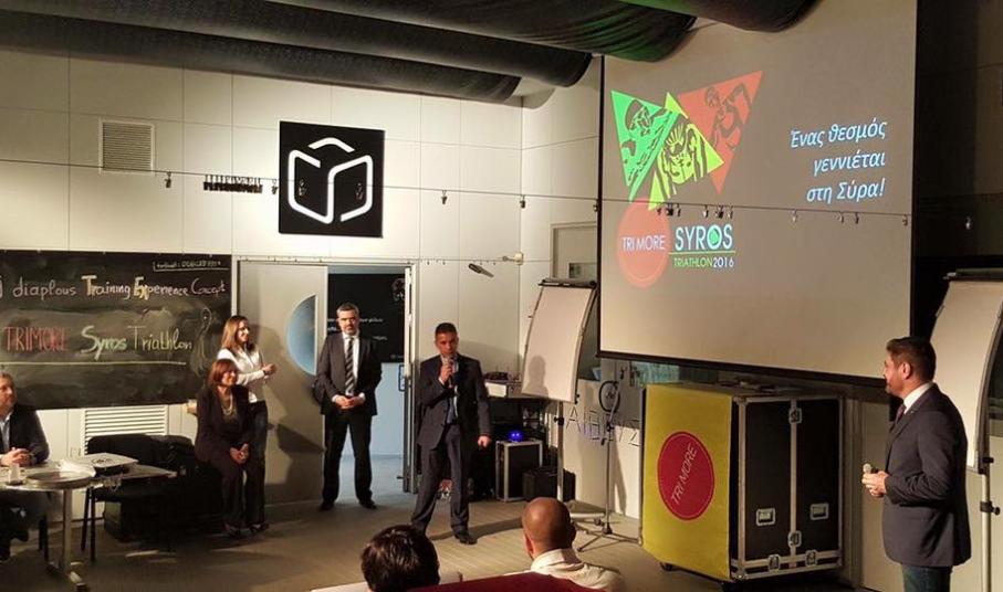 Το 1st TRIMORE Syros Triathlon 2016 απέκτησε ακόμη μεγαλύτερη υπόσταση, καθώς, την Πέμπτη 18 Φεβρουαρίου 2016, στον πολυχώρο της diaplous s.s.d.a. Ltd “diaplous Training Experience Concept – Ford T.C.”, πραγματοποιήθηκε η επίσημη παρουσίασή του.