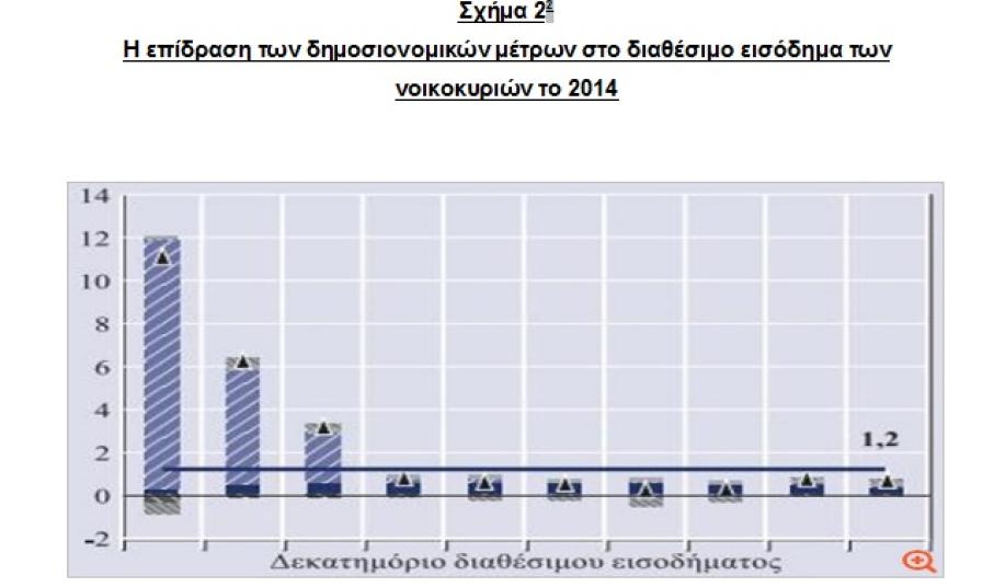 Σύμφωνα με ειδικό κεφάλαιο στην Έκθεση του Διοικητή της ΤτΕ για τις αναδιανεμητικές επιδράσεις των δημοσιονομικών μέτρων στην Ελλάδα κατά την περίοδο 2010-2015, το 2015, έλαβε χώρα μια πρωτόγνωρη μείωση διαθέσιμου εισοδήματος των φτωχότερων Ελλήνων.