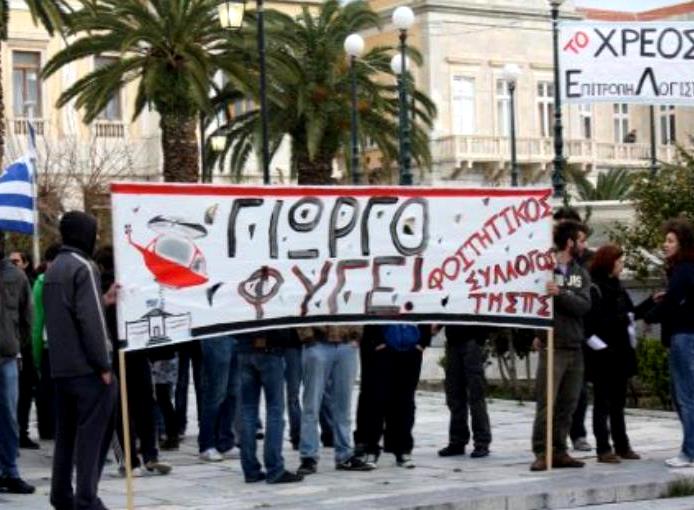 «Ο σύλλογός μας καταγγέλλει την ποινική δίωξη 11 συμπολιτών μας, που παραπέμπονται με βαριές κατηγορίες για να δικαστούν στις 7 Μάρτη 2016, επειδή συμμετείχαν στη μαζική κινητοποίηση του Συριανού λαού και των φοιτητών κατά τη διάρκεια της "επικοινωνιακής" επίσκεψης του τότε πρωθυπουργού Γ. Παπανδρέου στη Σύρο. Η διαδήλωση εκείνη ήταν ενάντια στην πολιτική των μνημονίων, ήταν μια ειρηνική διαδήλωση και όμως αντιμετωπίστηκε από τα ΜΑΤ, γεγονός πρωτόγνωρο για το νησί μας, που έκαναν μια εκτεταμένη χρήση δακρυγόνων, πνίγοντας στην κυριολεξία τον κόσμο που διαμαρτυρόταν.