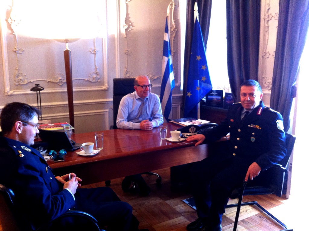 Τον Αντιπεριφερειάρχη Κυκλάδων κ. Γεώργιο Λεονταρίτη επισκέφτηκε σήμερα το πρωί στο γραφεία της έδρας της Περιφέρειας Νοτίου Αιγαίου ο νέος Γενικός Περιφερειακός Αστυνομικός Διευθυντής Νοτίου Αιγαίου υποστράτηγος κ. Κωνσταντίνος Τσαρδινάκης, με την ευκαιρία της ανάληψης των καθηκόντων του, συνοδευόμενος από τον Προϊστάμενο του Γραφείου Ενημέρωσης Δημοσιογράφων Αστυνομικών Υπηρεσιών Νοτίου Αιγαίου, Αστυνόμο Β΄ Πέτρο Βασιλάκη.