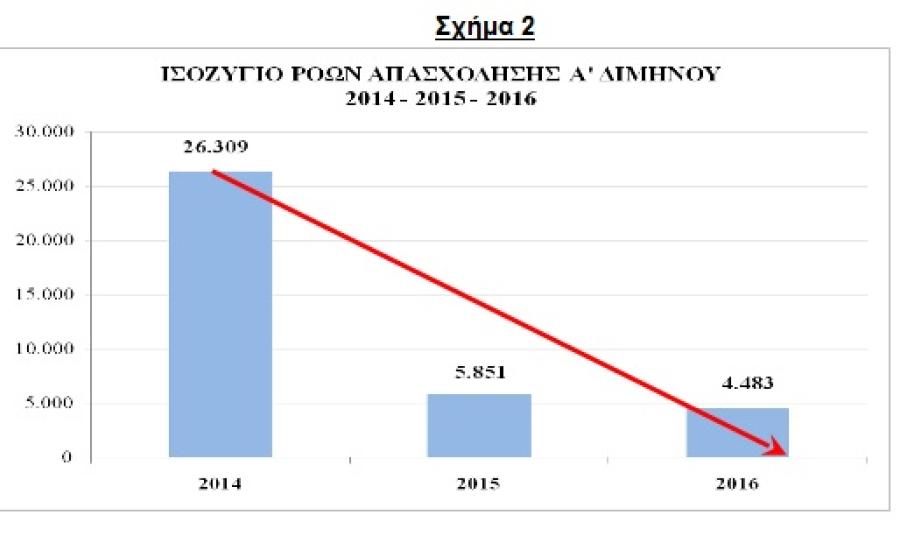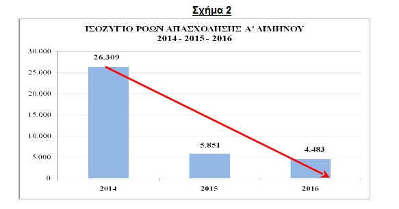Η υστέρηση αυτή διευρύνεται κατά 21.826 θέσεις απασχόλησης αν συγκριθεί το 1ο δίμηνο του 2014 με το αντίστοιχο του 2016 (σχήμα 2).