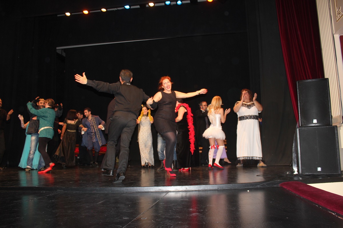 Οι τέσσερις ομάδες αποχαιρέτισαν το κοινό, τραγουδώντας και χορεύοντας όλες μαζί τον «Καραγκιόζη» του Διονύση Σαββόπουλου, που απογείωσε την ομολογουμένως επιτυχημένη πρωτοβουλία της Αντιδημάρχου Πολιτισμού Θωμαής Μενδρινού να «φέρει το Καρναβάλι στο Θέατρο Απόλλων».