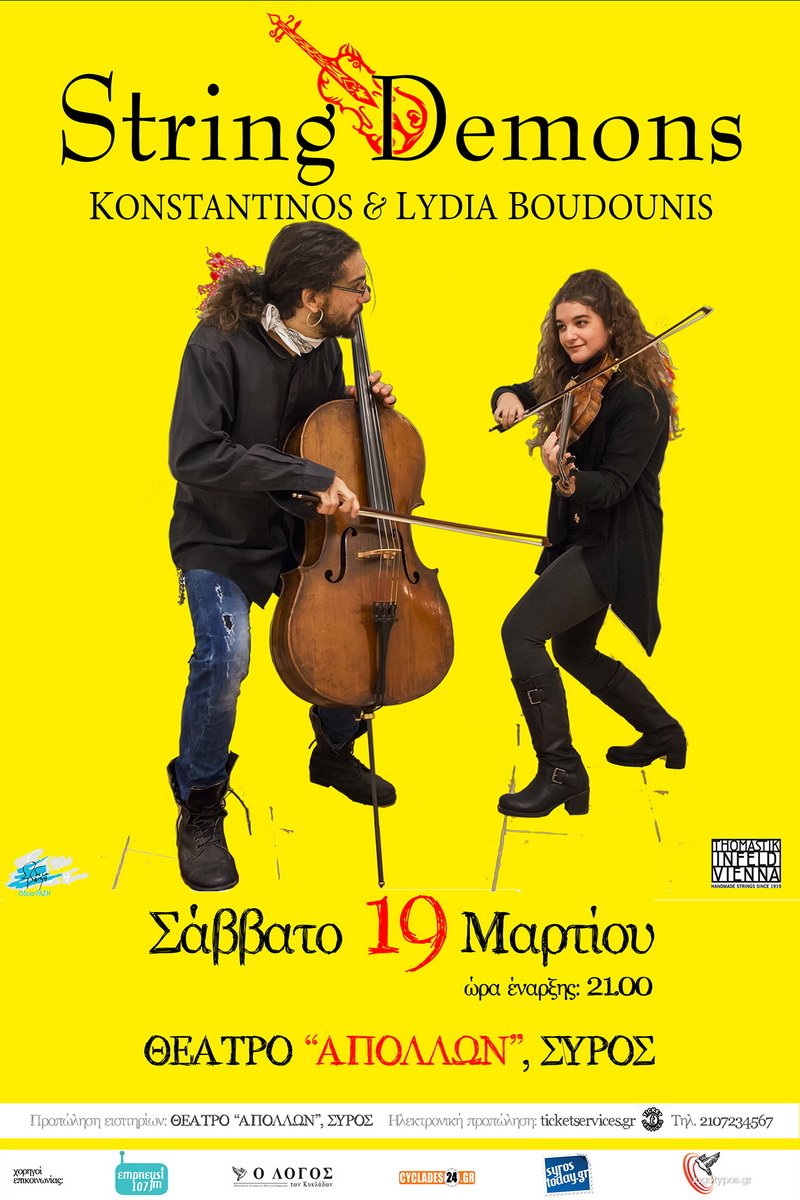 Οι «String Demons» έρχονται στο Θέατρο Απόλλων, στις 19 Μαρτίου 2016 και ώρα 21:00, για να μας παρασύρουν σε μία «Συμφωνική γιορτή», με βάση τα έγχορδα σε όλα τα μέρη της μουσικής.