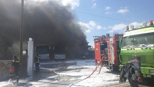 Μετά από πολύωρη μάχη με τις φλόγες οι πυροσβέστες έθεσαν υπό έλεγχο τη φωτιά η οποία ωστόσο σχεδόν κατέστρεψε 6 τουριστικά λεωφορεία.