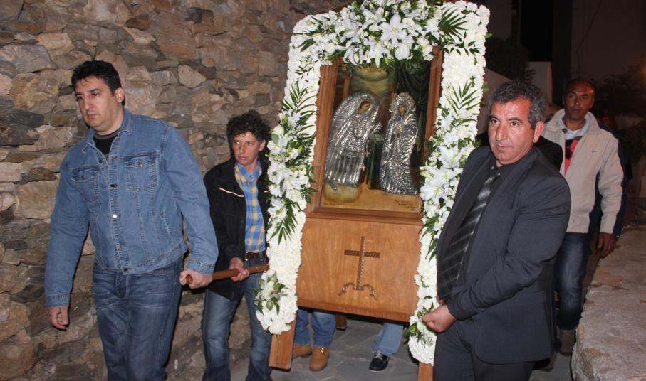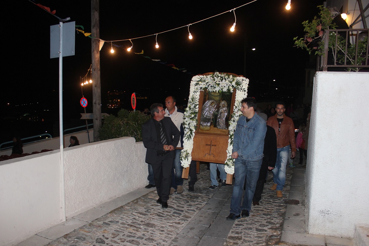 Άρωμα παλιάς Ελλάδας, τότε που οι γειτονιές έσφυζαν από ζωή και οι κάτοικοι τηρούσαν σαν μία μεγάλη οικογένεια, αγαπημένα ήθη και έθιμα, έφεραν οι εικόνες κατά της διάρκεια της περιφοράς της εικόνας στα σοκάκια των Καμινίων με τα φωταγωγημένα σπίτια, και τους κατοίκους στο κατώφλι και το δρόμο να ανταλλάζουν ευχές και χαμόγελα.