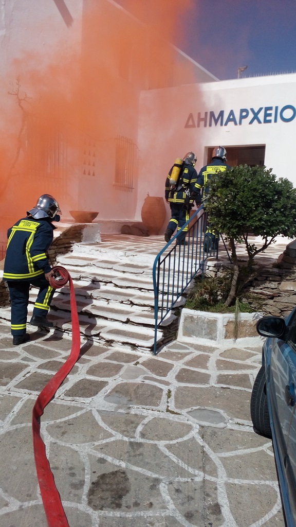 Σήμερα το πρωί πραγματοποιήθηκε με επιτυχία άσκηση ετοιμότητας του Πυροσβεστικού Κλιμακίου Πάρου σε συνεργασία με τοπικούς φορείς. Το σενάριο της άσκησης περιελάμβανε μερική κατάρρευση πτέρυγας του Δημαρχείου Πάρου που στεγάζεται στην Παροικιά κατόπιν ισχυρής σεισμικής δόνησης, εκδήλωση πυρκαγιάς και εγκλωβισμός τριών (3) ατόμων εντός του κτιρίου.