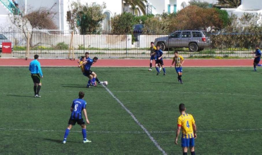 Το παιχνίδι μεταξύ του Α.Ο. Μυκόνου και του Α.Ο. Σύρου ήταν κλειστό με λίγες φάσεις μπροστά από τις δύο εστίες. Οι φιλοξενούμενοι οι οποίοι ήταν αδιάφοροι βαθμολογικά προσπάθησαν να κρατήσουν το μηδέν στην εστία τους και είχαν αμυντικούς προσανατολισμούς σε αντίθεση με τους Μυκονιάτες που από το πρώτο λεπτό έδειξαν πως θέλουν τη νίκη. Η ομάδα του Θεόφιλου Παχατουρίδη ήθελε του βαθμούς της νίκης ώστε να διατηρήσει τις όποιες ελπίδες έχει για την κατάκτηση του πρωταθλήματος, αφού ο Πανθηραϊκός έχει ένα “μαξιλαράκι” ασφαλείας. Ποιοτικά το ματς ήταν μέτριο, αφού ουσιαστικά έπαιζε η μία ομάδα μιας και η δεύτερη δεν ήθελε απλά να... χάσει. Ο Α.Ο. Μυκόνου είχε δύο καλές στιγμές στο πρώτο μέρος σε ένα... στείρο πρώτο ημίχρονο. Στην επανάληψη ο Ξένος από τα 50 περίπου μέτρα ξεκλείδωσε την άμυνα των Συριανών, αφού με απευθείας εκτέλεση φάουλ έστειλε τη μπάλα στα δίχτυα του Πρίντεζη. Ο 1-0 στο 59' έδωσε άλλον αέρα στους γηπεδούχους που στη συνέχεια δημιούργησαν μεγάλες ευκαιρίες για γκολ. Στο 84' ο Αμπαδίνης με κεφαλιά διαμόρφωσε το τελικό 2-0 στο παιχνίδι. Από εκεί και πέρα στο σκορ δεν άλλαξε μέχρι το φινάλε και η Μύκονος εξασφάλισε τους πολύτιμους τρεις βαθμούς.