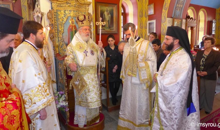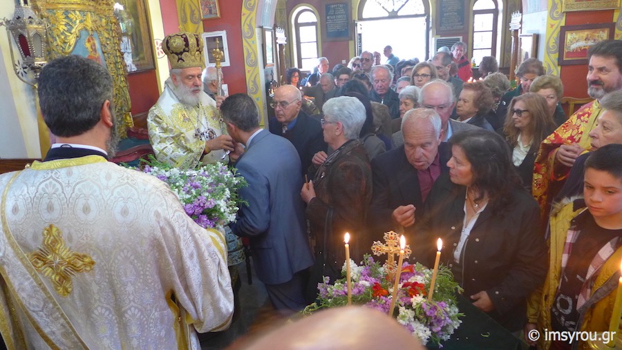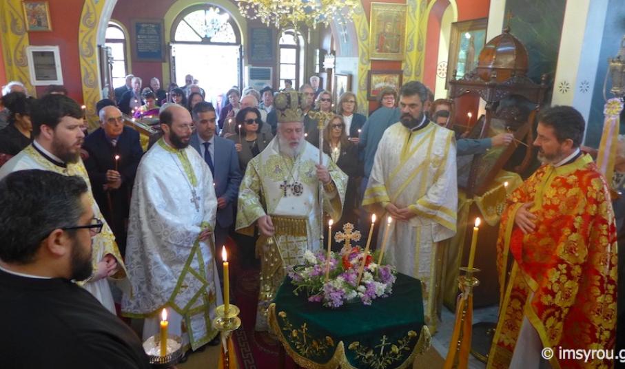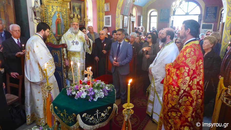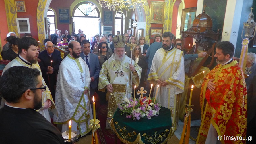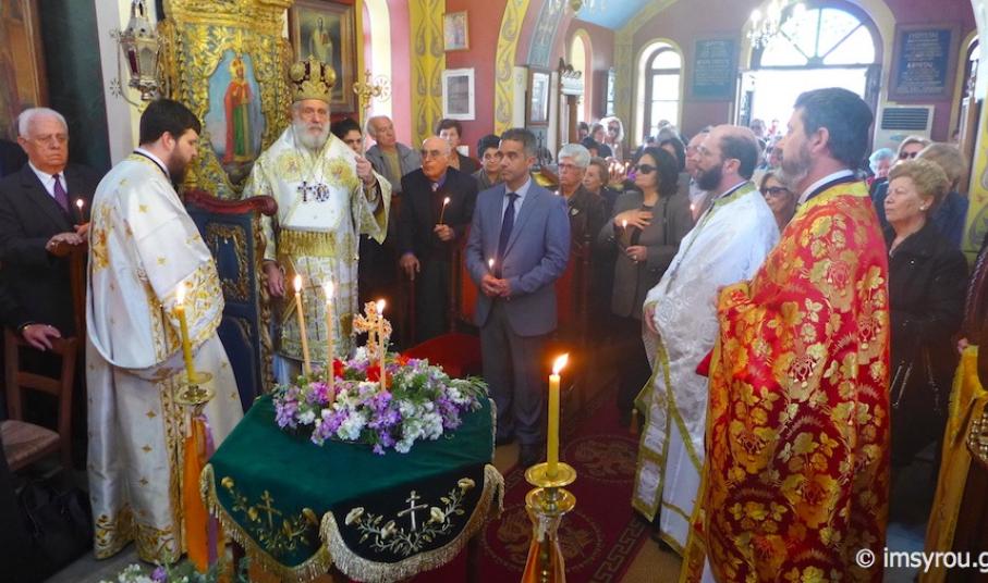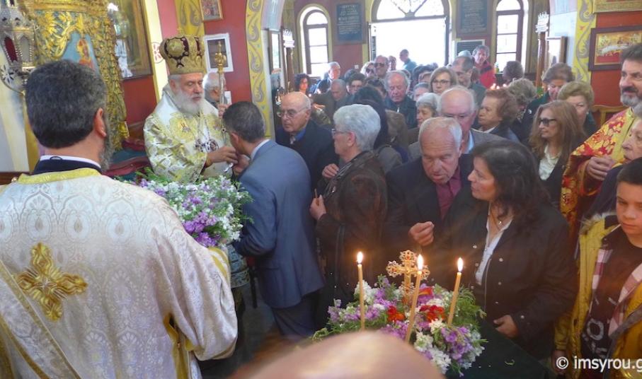 Στον Ενοριακό Ιερό Ναό του Τιμίου Σταυρού Παρακοπής Σύρου ιερούργησε το πρωί της Κυριακής ο Σεβασμιώτατος Μητροπολίτης Σύρου κ. Δωρόθεος Β', ο οποίος και τέλεσε την Ακολουθία της προσκυνήσεως του Τιμίου Σταυρού, παρουσία του Δημάρχου Σύρου- Ερμούπολης κ. Γ. Μαραγκού, του Αντιδημάρχου κ. Α. Αθανασίου, και πλήθους πιστών.