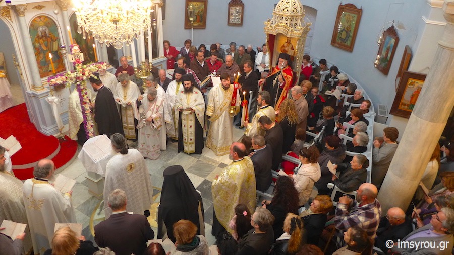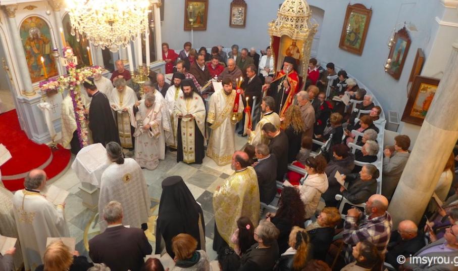 Στην Ακολουθία παρευρέθηκε πλήθος πιστών, μεταξύ των οποίων, ο Δήμαρχος Σύρου-Ερμούπολης κ. Γ. Μαραγκός, ο Πρόεδρος του Δημοτικού Συμβουλίου, ο Αντιδήμαρχος, Δημοτικοί Σύμβουλοι, ο Διοικητής της Σχολής Εμπορικού Ναυτικού, ο Προϊστάμενος της Δευτεροβάθμιας Εκπαίδευσης, Εκπαιδευτικοί και ο Αρεοπαγίτης κ. Κοσμίδης, Επιθεωρητής των Δικαστικών Λειτουργών της Σύρου, και οι επί τιμή Προϊστάμενοι Πρωτοβάθμιας και Δευτοβάθμιας Εκπαίδευσης.
