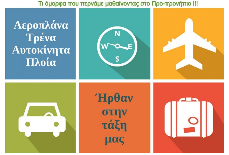Αεροπλάνα, τρένα, αυτοκίνητα και πλοία επισκέφτηκαν την τάξη των Προ-προνηπίων στον Παιδικό Σταθμό «Η Φωλιά». Οι μικροί μαθητές είχαν την ευκαιρία να γνωρίσουν όλα τα μέσα μεταφοράς, φτιάχνοντας σιδηροδρομικές ράγες με υλικά της τάξεις και κάνοντας σκυταλοδρομίας σκυταλοδρομίες.