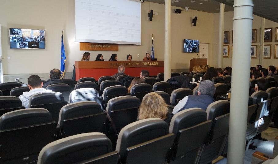 Η συνάντηση πραγματοποιήθηκε στη συνεδριακή αίθουσα του Επιμελητηρίου Κυκλάδων στη Σύρο με απευθείας διασύνδεση με τα γραφεία-συνεδριακούς χώρους στα 7 νησιά Άνδρο, Μήλο, Μύκονο, Νάξο, Πάρο, Σαντορίνη και Τήνο.