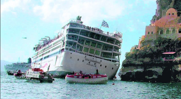 Ήταν 5 Απριλίου 2007, όταν το κρουαζιερόπλοιο “Sea Diamond” της εταιρείας Louis Hellenic Cruises, το οποίο μετέφερε 1163 επιβάτες και 391 μέλη πληρώματος, προσέκρουσε σε ξέρα, κοντά στο λιμάνι των Φηρών, με αποτέλεσμα να αρχίσει να βυθίζεται. Το ευτυχές της υπόθεσης ήταν, πως όλοι οι επιβάτες – πλην δύο Γάλλων υπηκόων, οι οποίοι κηρύχθηκαν αγνοούμενοι – και το πλήρωμα σώθηκαν, έπειτα από φιλότιμες προσπάθειες του Λιμενικού Σώματος, αλλά και των ντόπιων λεμβούχων.