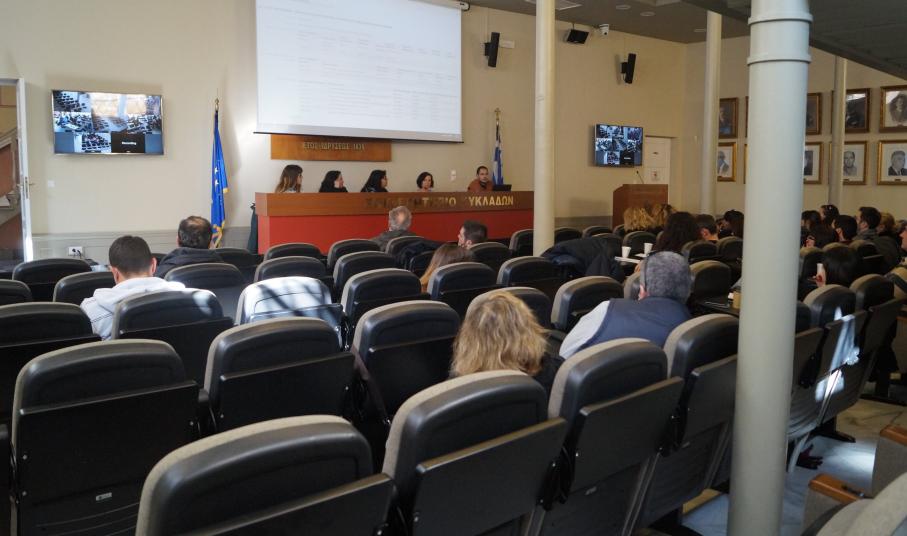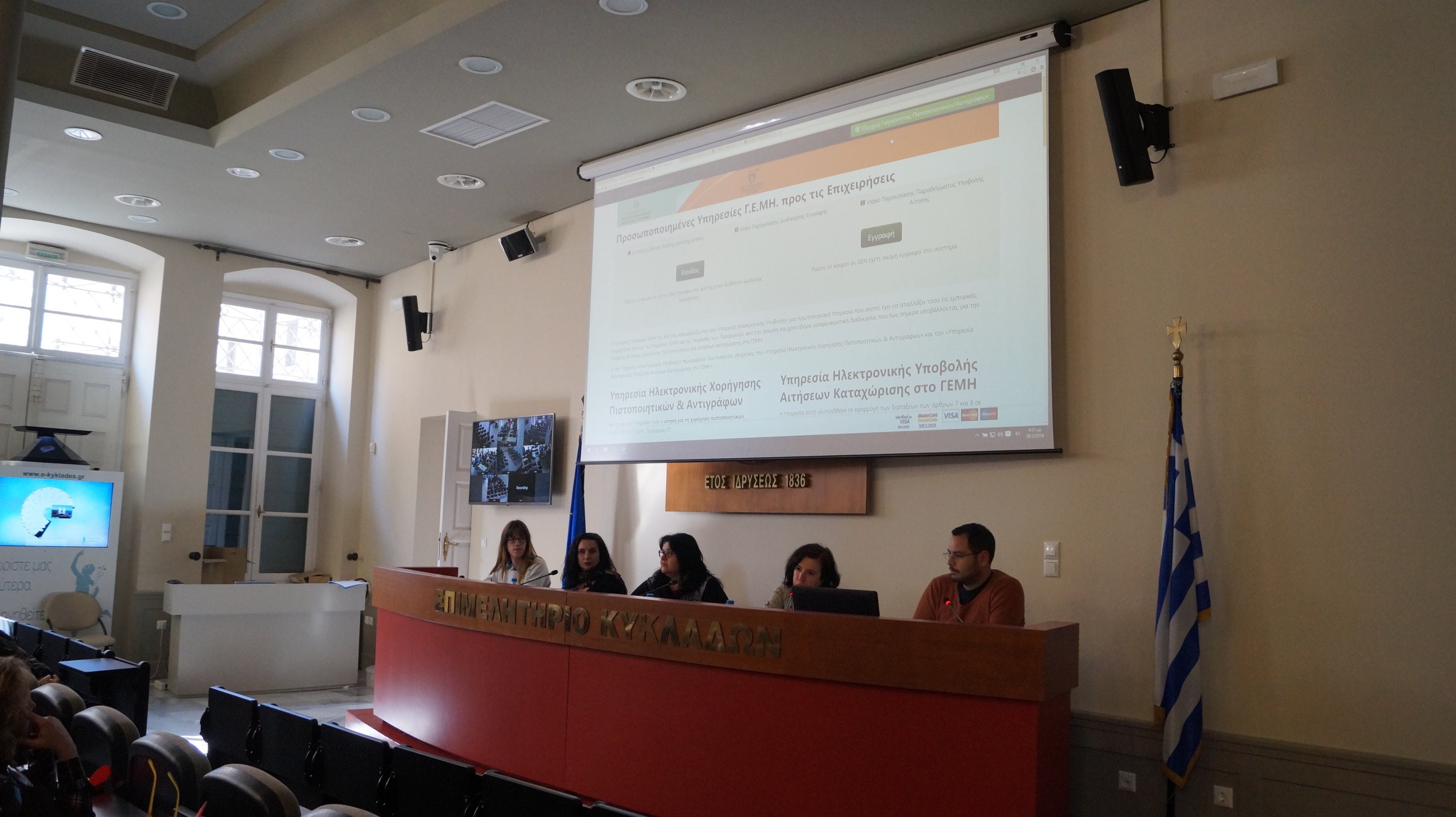 Η προσέλευση ήταν ικανοποιητική και η συνάντηση διήρκησε περίπου 2 ώρες, ξεκινώντας από παρουσίαση του portal του Επιμελητηρίου Κυκλάδων (www.e-kyklades.gr) και συγκεκριμένα της ενότητας που αφορά στην πληροφόρηση μελών. Στη συνέχεια, έγινε πλοήγηση στη διαδικτυακή πύλη του Γ.Ε.ΜΗ. (www.businessportal.gr) όπου μέσα σε πραγματικό περιβάλλον επιχείρησης αναλύθηκαν θέματα που αντιμετωπίζουν οι χρήστες της ιστοσελίδας. Ακολούθησε πλήρης ανάλυση των δυνατοτήτων και υπηρεσιών του Μητρώου Επιχειρήσεων (Business Registry) και της Επιχειρηματικής Πύλης (Business Portal), καθώς και σύντομη αναφορά στην Υπηρεσία-Μίας-Στάσης.
