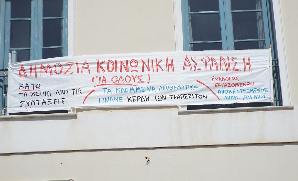Ελάχιστη ήταν η προσέλευση και η συμμετοχή στο χθεσινό κάλεσμα των Σωματείων, για συγκέντρωση διαμαρτυρίας, έξω από το κτίριο της Αποκεντρωμένης Διοίκησης Αιγαίου στη Σύρο, ενάντια στο νέο ασφαλιστικό και φορολογικό πολυνομοσχέδιο, το οποίο σχεδιάζει να φέρει προς ψήφιση στη Βουλή η κυβέρνηση, με αφορμή τις απεργιακές κινητοποιήσεις της ΑΔΕΔΥ.