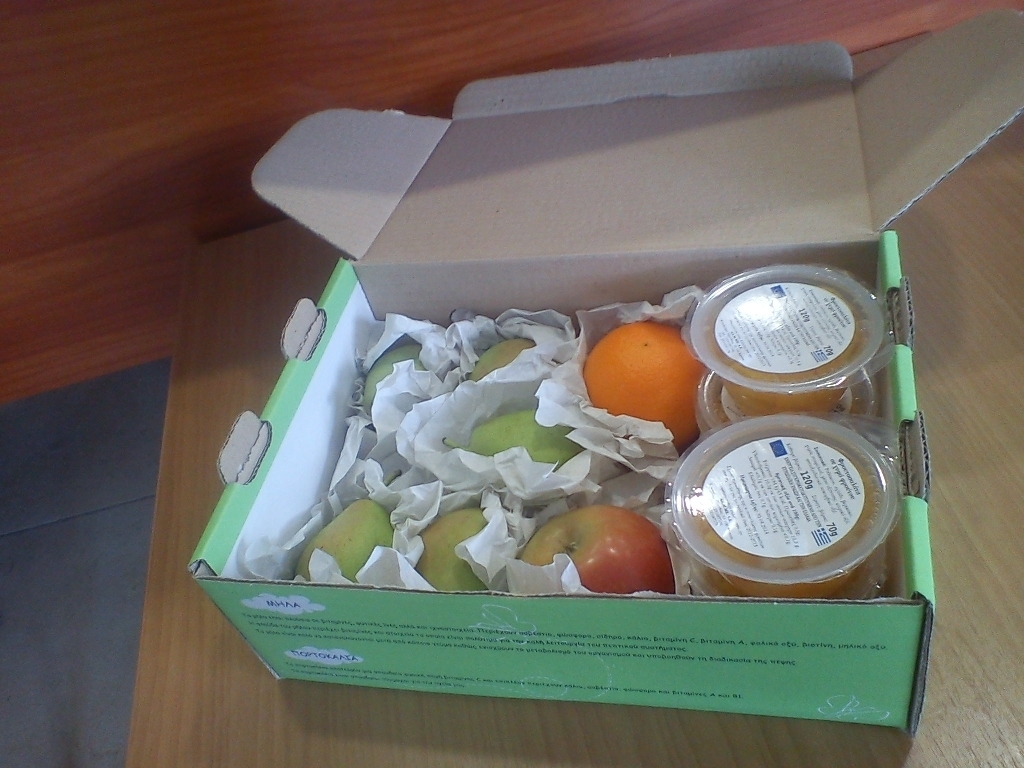Το πρόγραμμα προβλέπει τη διανομή έτοιμης φρουτοσαλάτας μέσα σε φρέσκο ελληνικό χυμό πορτοκαλιού, αλλά και φρούτων (μήλο, αχλάδι και πορτοκάλι), σε 364.665 μαθητές, σε 3.522 σχολεία της πρωτοβάθμιας εκπαίδευσης. Σύμφωνα με την υπουργική απόφαση, θα διανεμηθούν συνολικά 31 μερίδες φρούτων σε όλα τα δημόσια και ιδιωτικά δημοτικά σχολεία, σε 11 από τις 13 Περιφέρειας της χώρας, μεταξύ αυτών και στην Περιφέρεια Νοτίου Αιγαίου, με περίοδο υλοποίησης το χρονικό διάστημα Μάρτιος-Ιούνιος 2013.