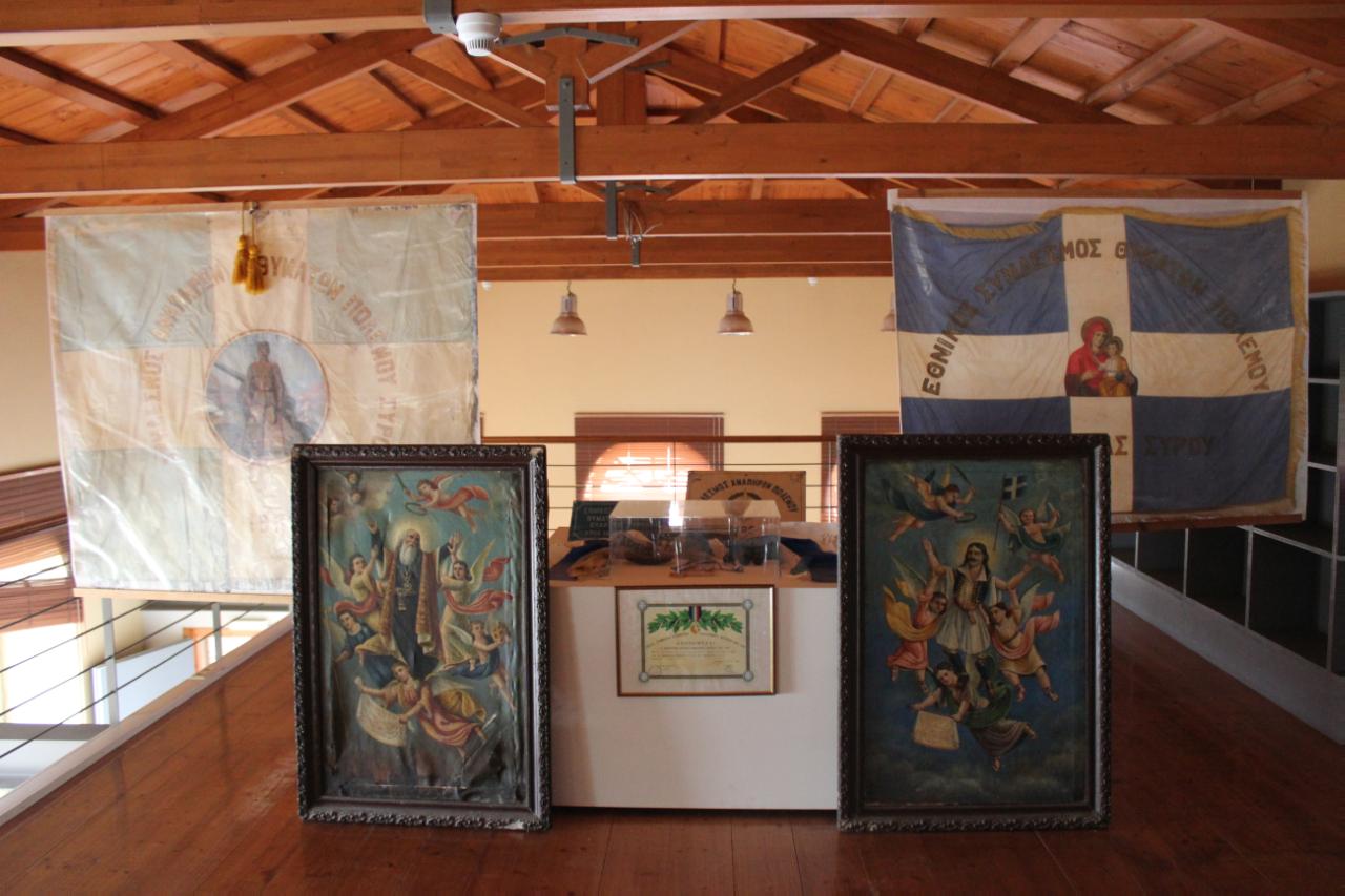 Περίοπτη θέση κατέχουν οι δύο εκ των τριών σημαιών του, σπάνιοι πίνακες, μετάλλια, τιμητικές διακρίσεις, πινακίδες, η γραφομηχανή του Συνδέσμου και διάφορα είδη γραφικής ύλης. Την αλληλογραφία του από το 1949 μέχρι το 2005, ξεχώρισε και ταξινόμησε ο υπεύθυνος του Μουσείου και επιμελητής της έκθεσης, Αχιλλέας Δημητρόπουλος.
