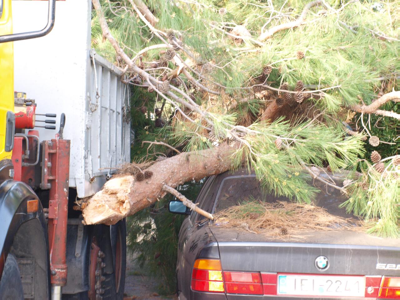 Ένα σπάνιο φαινόμενο συνέβη χθες το απόγευμα, όταν οδηγός που κινούταν στο περιφερειακό οδικό δίκτυο των Χρούσσων “βρέθηκε” με έναν κορμό δένδρου στην οροφή του οχήματός του. Συγκεκριμένα ο Γ. Μαραγκός “σώθηκε” από θαύμα, αφού είδε έναν μεγάλο κορμό πεύκου να πέφτει πάνω στο όχημα του, την ώρα που ο ίδιος είχε προορισμό την Ερμούπολη. Το συμβάν συνέβη ως εξής: Φορτηγό αυτοκίνητο με γερανό βρήκε πάνω σε κορμό πεύκου, με αποτέλεσμα ο κορμός αυτός να σπάσει και να πέσει πάνω στο όχημα του κ. Μαραγκού. Αφού και οι δύο οδηγοί αντελήφθησαν τη πραγματικά συνέβη, ειδοποίησαν την αστυνομία, η οποία μετά από λίγη ώρα έφτασε στο σημείο. Να σημειώσουμε εδώ, πως σύμφωνα με τα λεγόμενα όλων, κανείς δεν φέρει ευθύνη καθώς το πεύκο ήταν κάτω από το επιτρεπόμενο όριο και ο γερανός από την άλλη ήταν μέσα στα νόμιμα πλαίσια. Όπως λέχθηκε στο σημείο, το πεύκο δεν θα έπρεπε να ήταν κάτω από τα τεσσεράμισι μέτρα κι αυτό έχει σαν αποτέλεσμα να εμποδίζει την κυκλοφορία υψηλών οχημάτων.