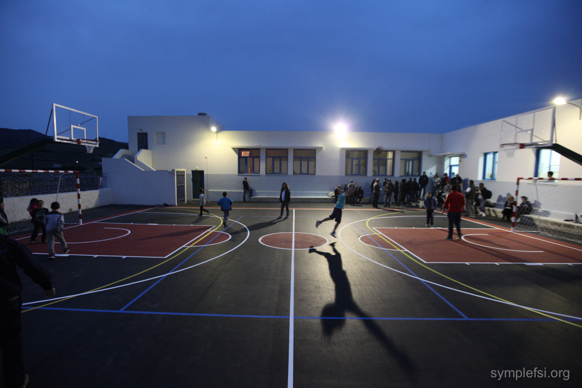 Ένα προαύλιο που πλέον είναι διαμορφωμένο σε ένα υπερσύγχρονο πολυγήπεδο, με ειδικό τάπητα και όλα τα απαραίτητα για την άθληση και την ασφάλεια των μικρών μαθητών. Το έργο είναι χορηγία του Lascaris Foundation.
