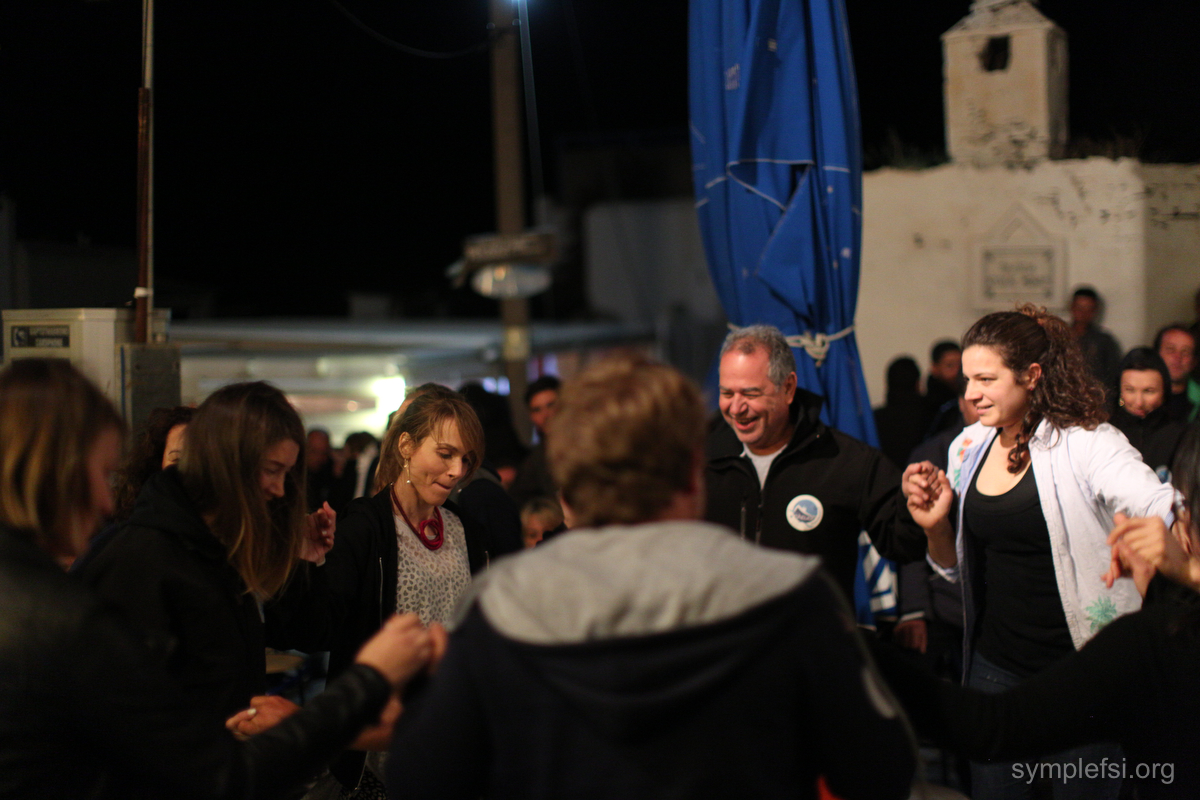 Το βράδυ, ο δήμος της Σικίνου έκανε το τραπέζι στους εθελοντές της Σύμπλευσης στη Χώρα και όλοι είχαν την ευκαιρία να ξαναβρεθούν με τους ανθρώπους του νησιού που γνωρίζουν καλά, αλλά και να κάνουν μία ευχάριστη ανάπαυλα, πριν «πιάσουν δουλειά» ξανά το επόμενο πρωί στα ιατρεία.