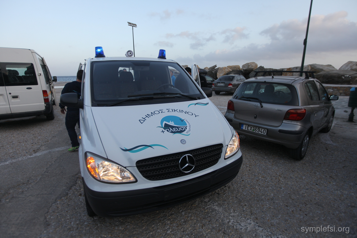 Τα καπνογόνα και οι κόρνες κατά την υποδοχή, έγιναν φέτος υπό τη συνοδεία… σειρήνας. Της σειρήνας του οχήματος διακομιδής εκτάκτων περιστατικών που η Σύμπλευση εξόπλισε και δώρισε στη Σίκινο, βάζοντας τέλος στην αγωνία των κατοίκων για την ασφαλή και ταχεία μεταφορά όσων έχουν ανάγκη στις κατάλληλες υποδομές υγείας.