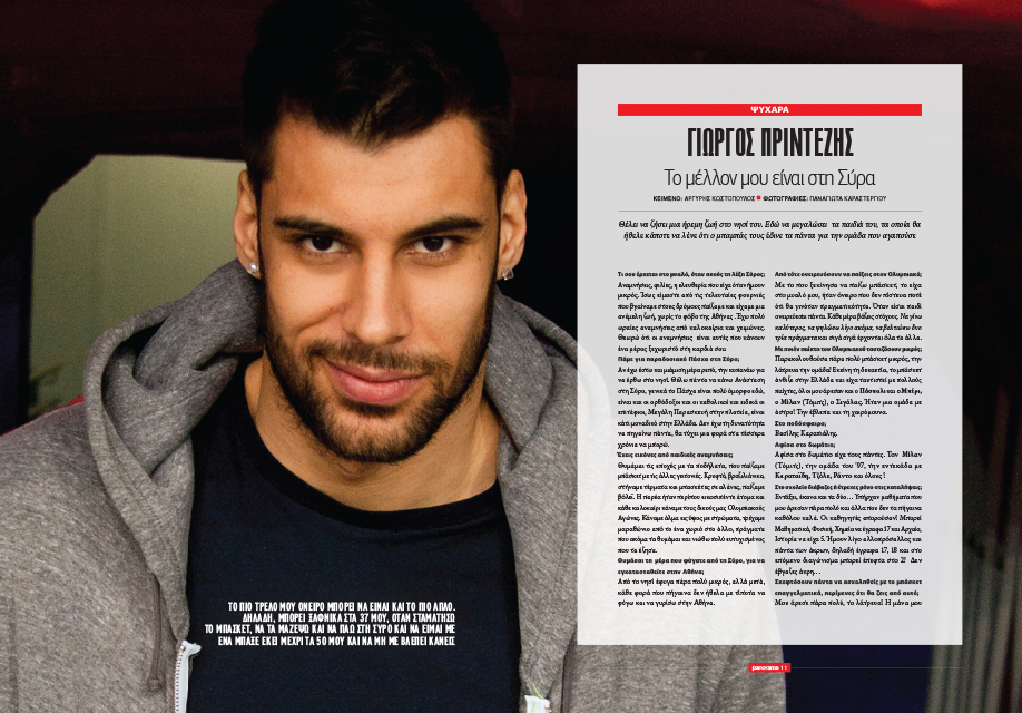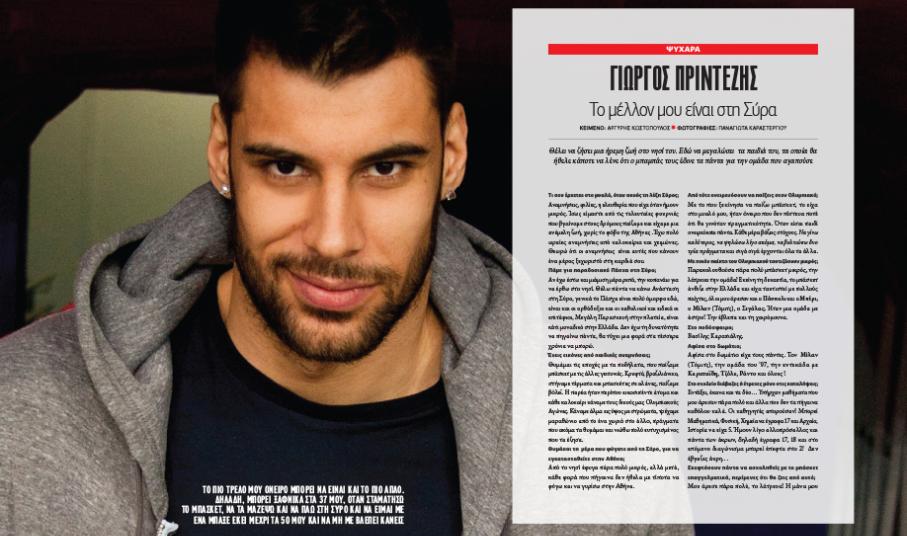 Τις παιδικές αναμνήσεις του από τη Σύρο, τις βόλτες με τα ποδήλατα, το κρυφτό στη γειτονιά, το μπάσκετ στις αλάνες και πολλά ακόμα θυμάται και μοιράζεται με τους θαυμαστές του ο διεθνής μπασκετμπολίστας, Γιώργος Πρίντεζης. Στην ερώτηση τι είναι αυτό που του έρχεται στο μυαλό όταν ακούει τη λέξη Σύρο, ο ίδιος απαντά: «αναμνήσεις, φιλίες, η ελευθερία που είχα όταν ήμουν μικρός. Ίσως είμαστε από τις τελευταίες φουρνιές που βγαίναμε στους δρόμους παίζαμε και είχαμε μια ανέμελη ζωή, χωρίς το φόβο της Αθήνας. Έχω πολύ ωραίες αναμνήσεις από καλοκαίρια και χειμώνες. Θεωρώ ότι οι αναμνήσεις είναι αυτές που κάνουν ένα μέρος ξεχωριστό στην καρδιά σου». Επιπλέον εξηγεί πως το πιο τρελό του όνειρο είναι και το απλό. «Μπορεί ξαφνικά στα 37 μου, όταν σταματήσω το μπάσκετ, να τα μαζέψω και να πάω στη Σύρο και να είμαι με ένα μπαξέ εκεί μέχρι τα 50 μου και να μη με βλέπει κανείς», υπογραμμίζει.