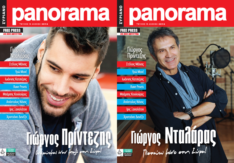 Με ένα διπλό εξώφυλλο μοιρασμένο ανάμεσα στον πολιτισμό και τον αθλητισμό, την εμπειρία και τη νιότη, την αναγνώριση και την απλότητα, το «Συριανό Panorama» επέστρεψε στην αγκαλιά του αναγνωστικού κοινού του με ένα χορταστικό ανοιξιάτικο τεύχος που φιλοδοξεί να μας μεθύσει με το ευωδιαστό άρωμα και τις ενδιαφέρουσες συνεντεύξεις του.