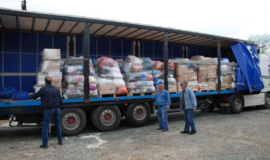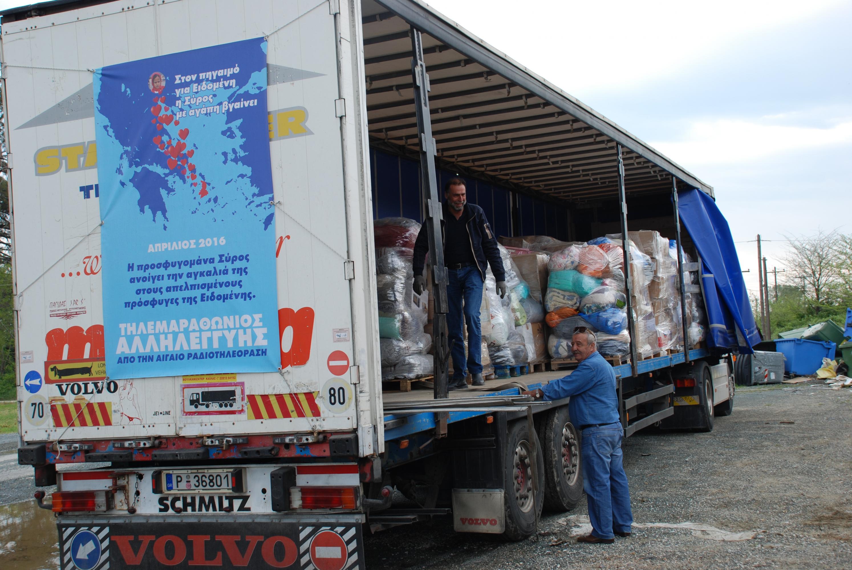 Η Συριανή αντιπροσωπεία διεξαγωγής του ΤΗΛΕΜΑΡΑΘΩΝΙΟΥ ΑΛΛΗΛΕΓΓΥΗΣ παρέδωσε στις αρμόδιες κοινωνικές δομές του Δήμου Παιονίας ( στον οποίο ανήκει η Ειδομένη) όλα εκείνα τα αγαθά τα οποία οι πολίτες της Σύρου πρόσφεραν με μεγαλείο ψυχής στους ταλαιπωρημένους και αποκλεισμένους πρόσφυγες της Ειδομένης. Μια δεκαεξάμετρη νταλίκα κι ένα μικρό VAN χώρεσαν τη γενναιοδωρία των πολιτών της Σύρου για να ζεσταθούν οι παγωμένες ψυχές και τα κορμιά των προσφύγων. Προσφυγομάνα η Σύρος, γνωρίζοντας καλά από διωγμούς και ξεριζωμούς, ανταποκρίθηκε συγκινητικά στην προσπάθεια και έδειξε ότι ακόμη και μέσα στην οικονομική κρίση ο Συριανός δεν χάνει το συναίσθημα και την ανθρωπιά του. Τα φάρμακα που συγκεντρώθηκαν παραδόθηκαν στην αρμόδια συντονίστρια των ΓΙΑΤΡΩΝ ΤΟΥ ΚΟΣΜΟΥ κ. Κορίνα Κανιστρά, η οποία δέχτηκε με χαρά και ανακούφιση πολλά φάρμακα που τους είχαν τελειώσει και δεν είχαν άλλα. Η κ. Κανιστρά ευχαρίστησε θερμά εκ μέρους ΤΩΝ ΓΙΑΤΡΩΝ ΤΟΥ ΚΟΣΜΟΥ όλους τους Συριανούς για τα πολύτιμα φάρμακα που τους εφοδίασαν. Τη Συριανή αντιπροσωπεία την οποία αποτελούσαν ο Μπάμπης Κουλούρας, πρόεδρος του Π.Σ. Άνω Σύρου- διευθυντής προγράμματος της ΑΙΓΑΙΟ ΡΑΔΙΟΤΗΛΕΟΡΑΣΗΣ και συντονιστής του ΤΗΛΕΜΑΡΑΘΩΝΙΟΥ, ο Γιάννης Καλοφωλιάς , πρόεδρος του Συλλόγου Πελοποννησίων Σύρου και ο Χρήστος Τσαούσογλου, πρόεδρος του Συλλόγου Μικρασιατών Ερμούπολης, την υποδέχθηκαν με ευγένεια και με έξοχη διάθεση φιλοξενίας ο ίδιος ο Δήμαρχος Παιονίας κ. Γκουντενούδης, ο αρμόδιος αντιδήμαρχος έργων κ. Αδαμόπουλος και η πρόεδρος της τοπικής Κοινότητας Ειδομένης κ. Σουπλή, οι οποίοι εκδήλωσαν τα συναισθήματα ευγνωμοσύνης τους προς τους διοργανωτές του ΤΗΛΕΜΑΡΑΘΩΝΙΟΥ, προς τους Συριανούς πολίτες και προς το Δήμο Σύρου-Ερμούπολης ο οποίος πρωτοστάτησε στην προσπάθεια και έθεσε στην υπηρεσία της αποστολής κάθε τι που ήταν απαραίτητο για την τελική διεκπεραίωση. Οι Συριανοί εκπρόσωποι συνοδευόμενοι από την δημοτική αρχή της Παιονίας και την Κοινοτάρχη της Ειδομένης επισκέφθηκαν τον καταυλισμό των προσφύγων και τα συρματοπλέγματα αίσχους των Σκοπιανών. Έζησαν από κοντά και με τα ίδια τους τα μάτια την τραγωδία που ζουν δεκατρείς χιλιάδες εγκλωβισμένοι πρόσφυγες, εκτεθειμένοι στον αέρα, στη βροχή, στην πείνα και τις αρρώστιες, απελπισμένοι από τη στάση των Ευρωπαίων, από τη βαρβαρότητα των Σκοπιανών και από την απουσία της επίσημης Ελληνικής Πολιτείας που τους έχει εγκαταλείψει στη μοίρα τους αλλά και στα χέρια κάποιων ΜΚΟ αγνώστου προελεύσεως με ύποπτες πρακτικές και με προβοκατόρικες τακτικές… Επισκέφθηκαν τις υπέροχες Γιαγιάδες της ΕΙΔΟΜΕΝΗΣ που άνοιξαν τα σπίτια τους στους πρόσφυγες και γλύκαναν με της μεγάλη τους καρδιά τον πόνο κάποιων από αυτούς. Ευχαρίστησαν εκ μέρους όλων των Ελλήνων και των Συριανών αυτές τις συγκλονιστικές γυναίκες και τις προμήθευσαν με κάποια πολύ χρήσιμα είδη και εφόδια και με συριανά λουκούμια προσφορά των βιοτεχνιών ΚΟΡΡΕ, ΣΥΚΟΥΤΡΉ και ΔΕΝΑΞΑ, με νόστιμα βουτήματα της αρτοποιίας ΣΕΙΡΙΟΣ του Τάκη Δεναξά, καθώς και με ζυμαρικά, προσφορά των παραδοσιακών προιόντων Κώστα Πρέκα. Το οδοιπορικό του ΤΗΛΕΜΑΡΑΘΩΝΙΟΥ της ΑΙΓΑΙΟ ΡΑΔΙΟΤΗΛΕΟΡΑΣΗΣ θα προβληθεί τις προσεχείς ημέρες από το τοπικό δημοτικό κανάλι. Μέγας χορηγός του ΤΗΛΕΜΑΡΑΘΩΝΙΟΥ ήταν η BLUE STAR FERRIES η οποία έδειξε για άλλη μια φορά το κοινωνικό της πρόσωπο και μετέφερε δωρεάν τα αυτο