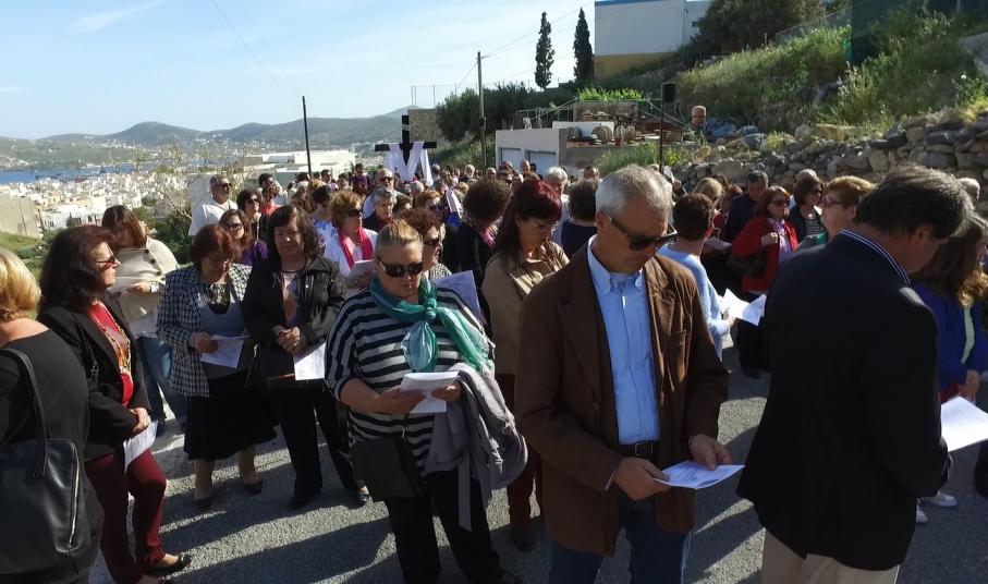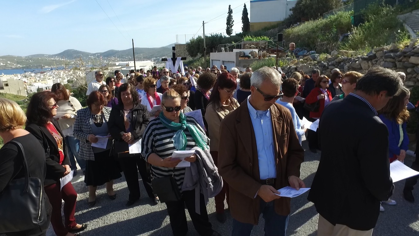 Πλήθος πιστών συνόδευσε και φέτος τον Ιησού Χριστό στην πορεία του προς τον Γολγοθά, στο πλαίσιο του καθιερωμένου Πανσυριανού Δρόμου του Σταυρού που πραγματοποιήθηκε χθες το απόγευμα από την Καθολική Επισκοπή Σύρου.