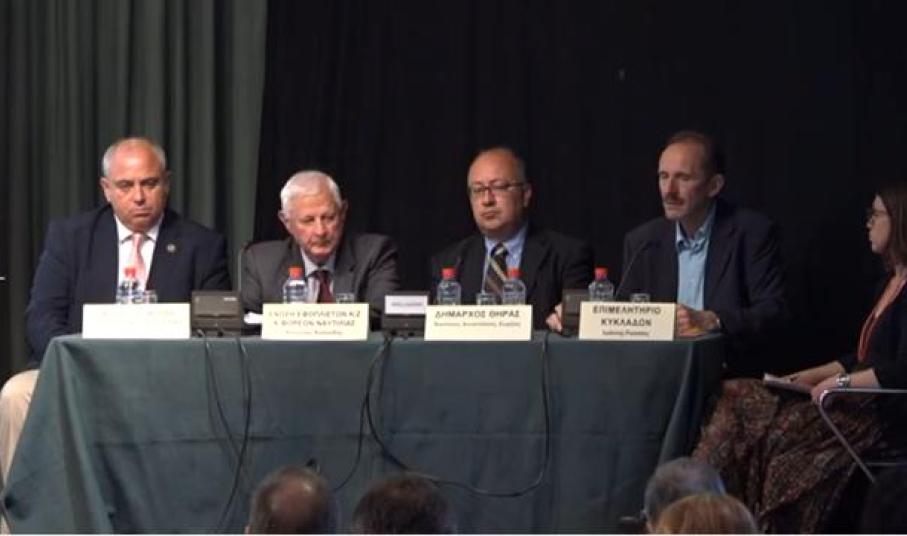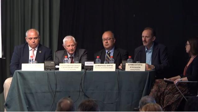 Στην καρδιά υποδοχής της ελληνικής κρουαζιέρας, τη Σαντορίνη, το Επιμελητήριο Κυκλάδων σε συνεργασία με τον Δήμο Θήρας και το Εμποροεπαγγελματικό Σύλλογο Θήρας συνδιοργάνωσαν συνάντηση εργασίας «Η Κρουαζιέρα στη Σαντορίνη: Οφέλη, Προβλήματα, Διαχείριση, Νέες Τάσεις, Δυνατότητες Αξιοποίησης, Προτάσεις».
