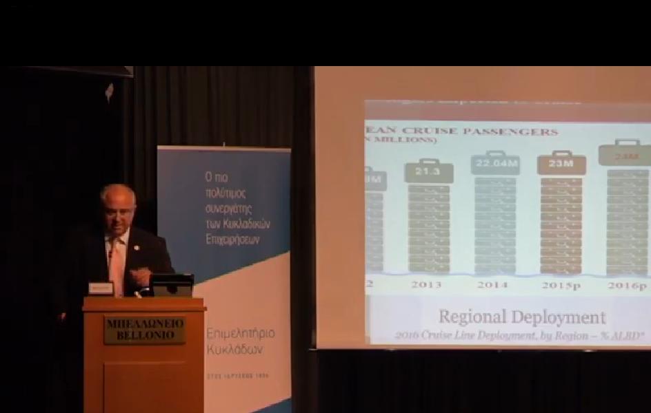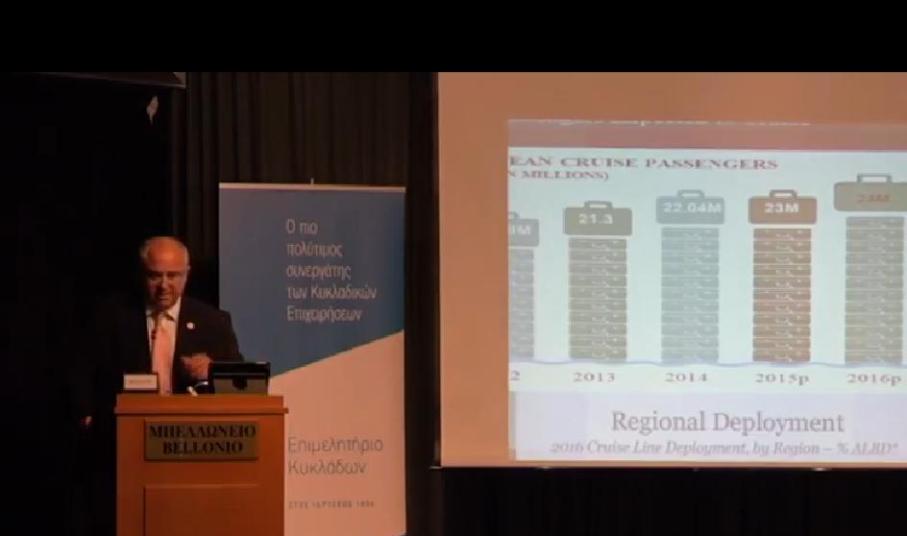 Ο Εμπειρογνώμονας Διεθνούς Κρουαζιέρας, Χρήστος Νικολαΐδης MBA, PhD, ο οποίος ήταν και ο βασικός εισηγητής της συνάντησης εργασίας, καθώς διαθέτει υψηλή τεχνογνωσία ως προς τους προορισμούς, ενώ διαθέτει το πλεονέκτημα να διατηρεί γραφείο στο Μαϊάμι, όπου και είναι το κέντρο των εξελίξεων της κρουαζιέρας, αναφέρθηκε στο μέλλον της κρουαζιέρας στη Σαντορίνη και την Ελλάδα.