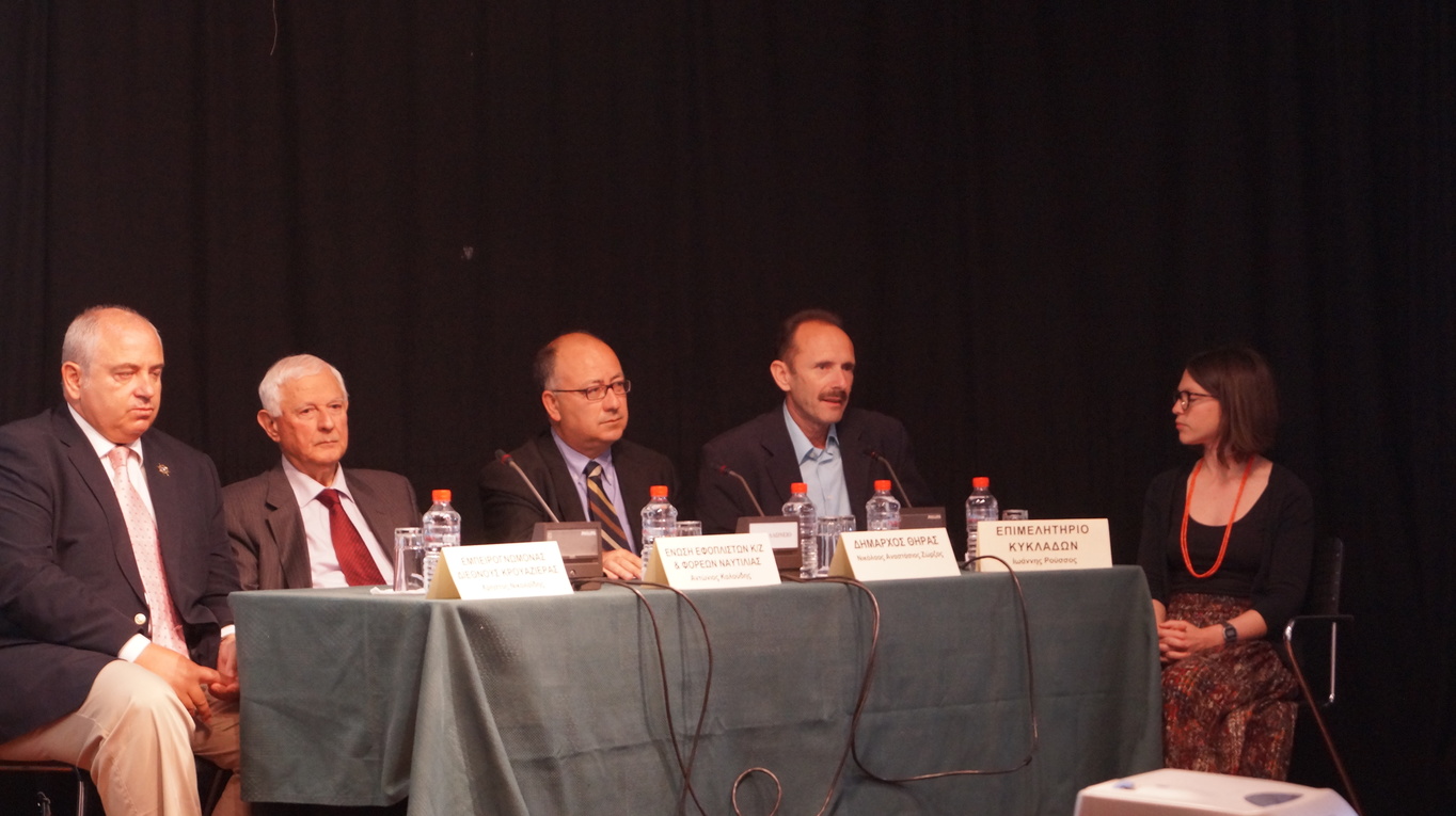 Εκ μέρους του προέδρου του Εμποροεπαγγελματικού Συλλόγου Θήρας, Νίκου Νομικού, ο οποίος τοποθετήθηκε για «Τα οφέλη της κρουαζιέρας στη Σαντορίνη και ο ρόλος της τοπικής κοινωνίας», εκφράστηκε η βελτίωση απόδοσης για την τοπική επιχειρηματική δραστηριότητα σε σχέση με την κρουαζιέρα.