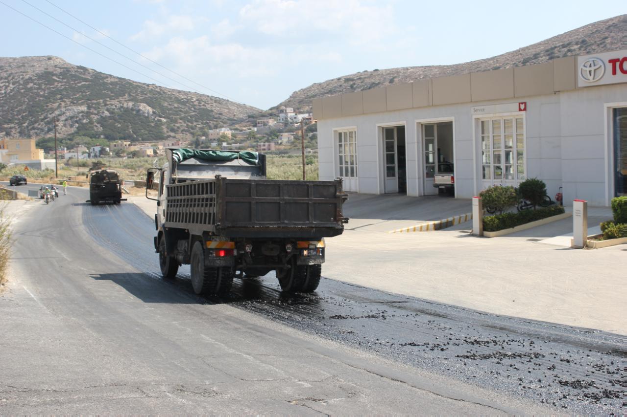 Το έργο αφορά την επίστρωση ασφαλ- τοτάπητα 200 μέτρων σε έξι σημεία του νησιού, τα οποία χρήζουν άμεσης παρέμ- βασης. Η αρχή έγινε στην κεντρική οδό του Κάτω Μάννα που οδηγεί προς την Αζόλιμνο, ενώ οι εργασίες θα συνεχι- στούν στην Ποσειδωνία (πριν τον κόμβο για Αγκαθωπές), σε δύο τμήματα της δι- αδρομής Γαλησσά - Φοίνικα, στα Τάλαντα (στο ύψος των εργατικών κατοικιών) και