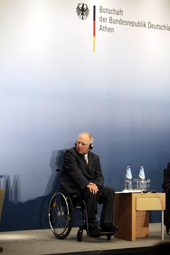 Σε εκδήλωση του Ελληνογερμανικού Επιμελητηρίου, η οποία πραγματοποιήθηκε σε κεντρικό ξενοδοχείο των Αθηνών, με τη συμμετοχή των υπουργών Οικονομικών κ. Γ. Στουρνάρα και Ανάπτυξης κ. Κ. Χατζιδάκη, ο Β. Σόιμπλε αναφερόμενος στην κρίση της Ευρωζώνης σημείωσε ότι «η κρίση του ευρώ δεν έχει περάσει, δεν έχουμε ξεπεράσει τον κίνδυνο».