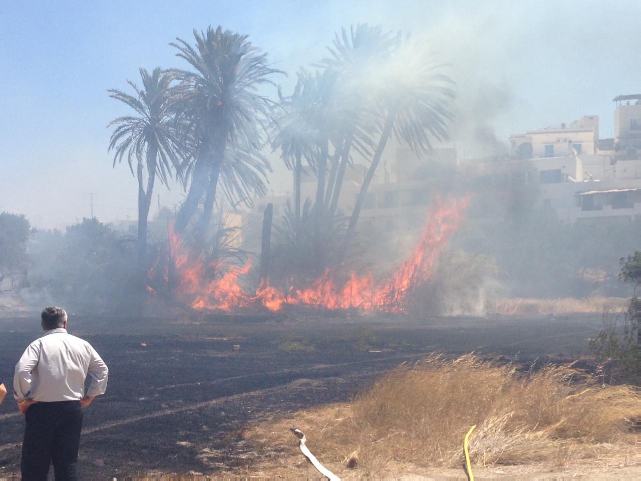 Στο σημείο έσπευσε άμεσα ένα όχημα της Πυροσβεστικής Υπηρεσίας και η υδροφόρα του Δήμου, οι δύο Αντιδήμαρχοι, δημοτικοί σύμβουλοι, αλλά και ο Δήμαρχος του νησιού, Γεράσιμος Δαμουλάκης, ο οποίος μάλιστα διέκοψε και τη συνεδρίαση του δημοτικού συμβουλίου. Να σημειωθεί ότι στην προσπάθεια κατάσβεσης της φωτιάς, ρίχθηκαν και οι κάτοικοι των γύρω σπιτιών, όπου με σωλήνες νερού προσπαθούσαν να περιορίσουν το μέτωπο.