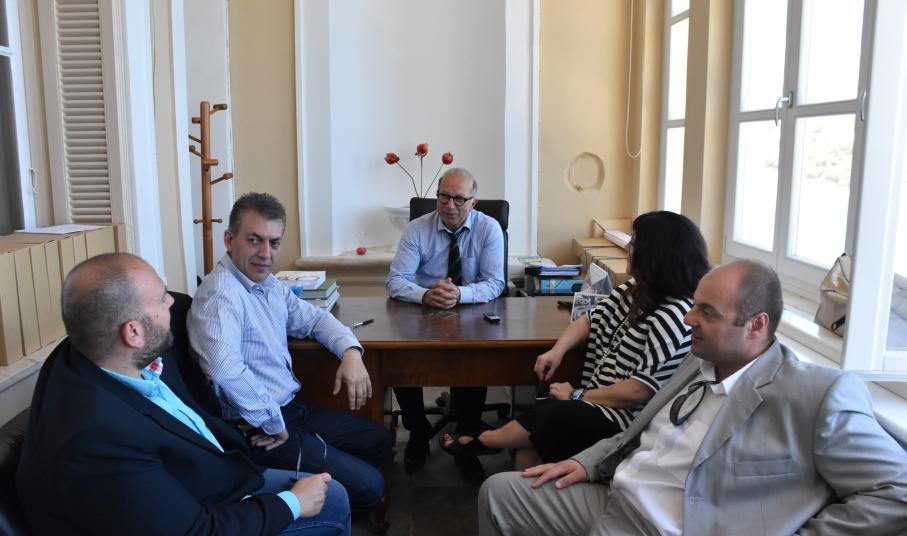 Τέλος, ο Βουλευτής Κυκλάδων της ΝΔ, κλείνοντας τον κύκλο των επαφών του στη Σύρο με τους φορείς του νησιού, επισκέφθηκε και ξεναγήθηκε από τον Πρόεδρο, κ. Γιάννη Ρούσσο, στους χώρους του Επιμελητηρίου Κυκλάδων και ενημερώθηκε για την πολύπλευρη θεσμική του λειτουργία σε όλα τα νησιά του νομού.