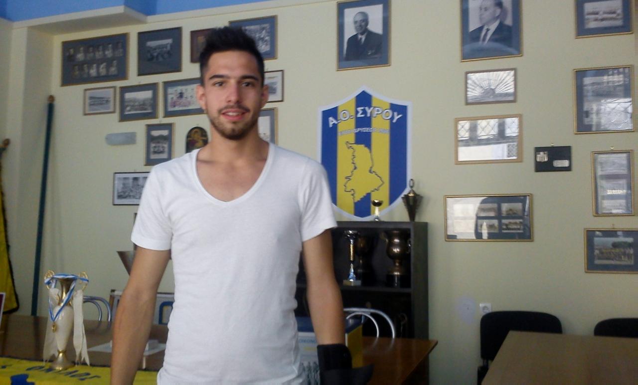 Πόσο σημαντικό ρόλο έπαιξε στο να έρθεις στην ομάδα της Σύρου το γεγονός ότι γνωρίζει πολύ καλά δύο ακόμη παίκτες που ήρθαν φέτος στην ομάδα; “Είναι ένα πολύ καλό συναίσθημα να αγωνίζεσαι με παιδιά που τα γνωρίζεις πολύ καλά. Πιστεύω ότι το γεγονός αυτό θα μας βοηθήσουμε μέχρι να βρούμε ο ένας τον άλλον. Πιστεύω ότι όλοι οι παίκτες μεταξύ μας θα γίνουμε μία “γροθιά” και όλοι θα δουλέψουμε για το καλό της ομάδας. Ξεκίνησε όντως η προετοιμασία και μας περιμένει πολύ σκληρή δουλειά. Πρέπει όλο αυτό το χρονικό διάστημα να δουλέψουμε με σοβαρότητα ώστε να γίνουμε μία καλή “οικογένεια” και να γιορτάσουμε στο τέλος την άνοδο στην Γ' Εθνική”.
