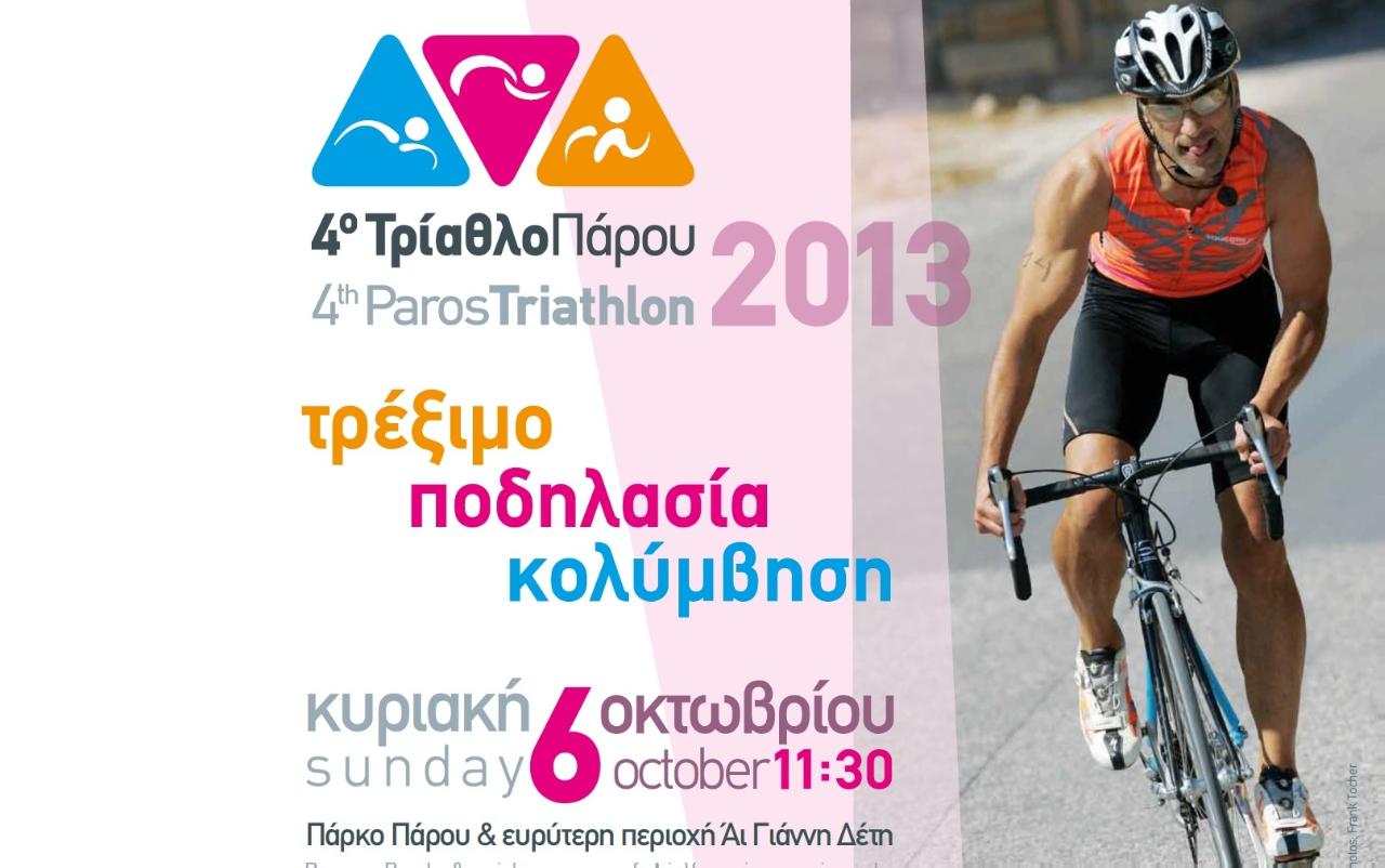 Το Πάρκο Πάρου, ο Ποδηλατικός Όμιλος Πάρου και η Ευζωία συνδιοργανώνουν το 4ο Τρίαθλο Πάρου, με την υποστήριξη του Ομίλου Θαλάσσιου Σκι Πάρου, του Water Ski Zone και της Ελληνικής Ομάδας Διάσωσης – Παράρτημα Κυκλάδων.