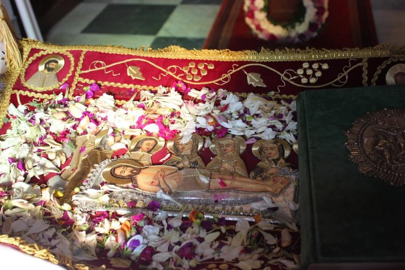 Η ακολουθία του Επιτάφιου Θρήνου στον Ιερό Ναό Κοιμήσεως της Θεοτόκου θα αρχίσει στις 19:30, η δε Λιτανεία του Επιταφίου στις 21:00, με την εξής διαδρομή: Σταματίου Πρωϊου, Ασκληπιού, Ι. Διακάκη, Υψηλάντου, Ι. Κοσμά, Ψαρών, Ταλαρά, Μυτιλήνης, Θεσσαλονίκης, Σταματίου Πρωΐου, Δωδεκανήσου, Ακτή Π. Ράλλη, Ελευθερίου Βενιζέλου, είσοδος στην Πλατεία Μιαούλη από την δυτική πλευρά. Έξοδος από την πλατεία από τη δυτική πλευρά και επάνοδος στο Ναό, δια των οδών Ελευθερίου Βενιζέλου και Σταματίου Πρωΐου.