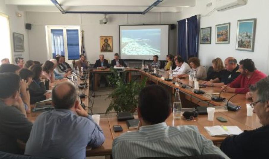 Η σύσκεψη πραγματοποιήθηκε μετά από πρόσκληση του δημάρχου Πάρου, Μάρκου Κωβαίου, και του προέδρου του Δημοτικού Λιμενικού Ταμείου Πάρου-Αντιπάρου, Σταύρου Καραχάλιου, την Παρασκευή 22 Απριλίου 2016 στην αίθουσα συνεδριάσεων του δημοτικού συμβουλίου.