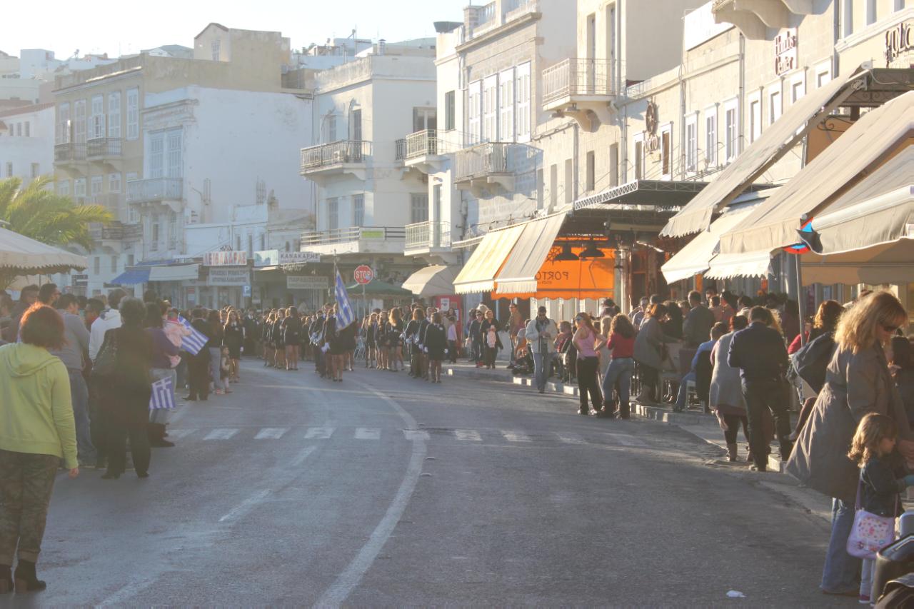 Πού να το φανταστώ ότι όλος αυτός ο κόσμος είχε στηθεί από νωρίς σε πεζοδρόμια και μαγαζιά για να παρακολουθήσει μία απλή μαθητική παρέλαση; Είδα το μπούγιο δεξιά και αριστερά, είδα τα φλας να παίρνουν φωτιά, είδα μαύρα γυαλιά και κρεπαρισμένα μαλλιά και υπέθεσα ότι θα ακολουθούσε κάτι φαντασμαγορικό. Ότι η παρέλαση άνοιγε ένα ντεφιλέ μόδας και τα παιδιά έπρεπε να σταθούν στο ύψος των περιστάσεων.