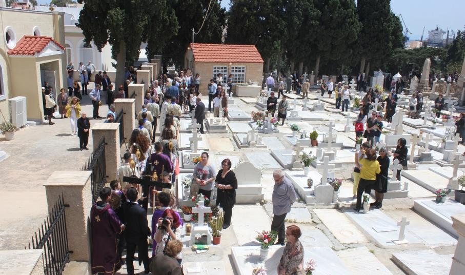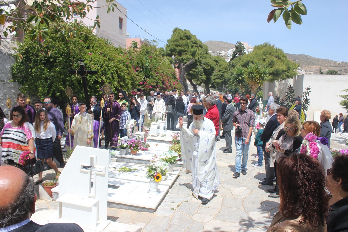 Δάκρυα θλίψης, αλλά και οδύνης για την απώλεια των αγαπημένων τους προσώπων, που έφυγαν από τη ζωή, αφήνοντας πίσω τους δυσαναπλήρωτο κενό στους οικείους τους, πλημμύρισαν τα μάτια όσων βρέθηκαν το μεσημέρι της Μεγάλης Παρασκευής στο Κοιμητήριο του Αγίου Γεωργίου Ερμουπόλεως.