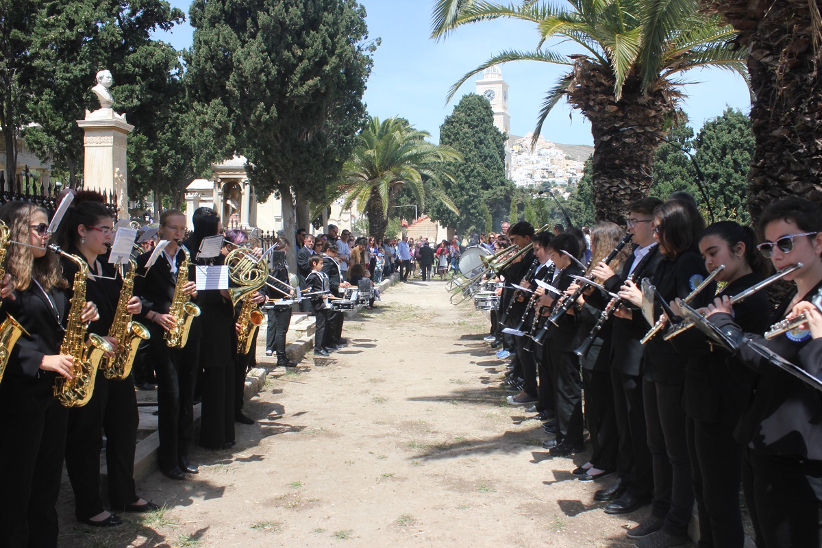 Τον Επιτάφιο συνόδευσαν οι πρόσκοποι Σύρου, ενώ πένθιμα εμβατήρια απέδωσε η Φιλαρμονική του Δήμου Σύρου – Ερμούπολης, η οποία θα συμμετέχει επίσης στην αποψινή περιφορά και συνάντηση των επιταφίων των Ιερών Ναών Κοιμήσεως, Αγίου Νικολάου και Μεταμορφώσεως του Σωτήρος στην πλατεία Μιαούλη.