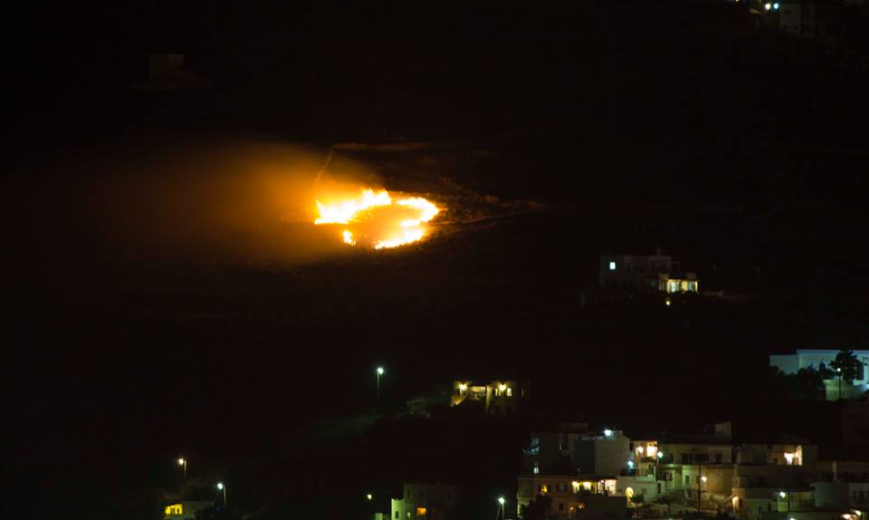 Με φωτιές σε διάφορα σημεία του νησιού συνοδεύτηκε η χαρμόσυνη είδηση της Ανάστασης του Κυρίου, προκαλώντας ανάμεικτα συναισθήματα στους κατοίκους των περιοχών, οι οποίες απειλήθηκαν ξαφνικά το βράδυ του Μεγάλου Σαββάτου, Πυρκαγιές σε διάφορα σημεία της Σύρου σημειώθηκαν το βράδυ της Ανάστασης από φωτοβολίδες. Συγκεκριμένα ξέσπασαν πυργκαγιές πλησίον του Πολιτιστικού Χώρου "Μάνος Ελευθερίου" στην περιοχή του Αγιού Παντελεήμονα και στην περιοχή του Δηλίου κοντά στο γήπεδο της Άνω Σύρου. 'Αμεση ήταν η κινητοποίηση των πυροσβεστικών δυνάμεων και υδροφόρων του δήμου, οι οποίες κατέφθασαν στα σημεία για την κατάσβεση των πυρκαγιών.