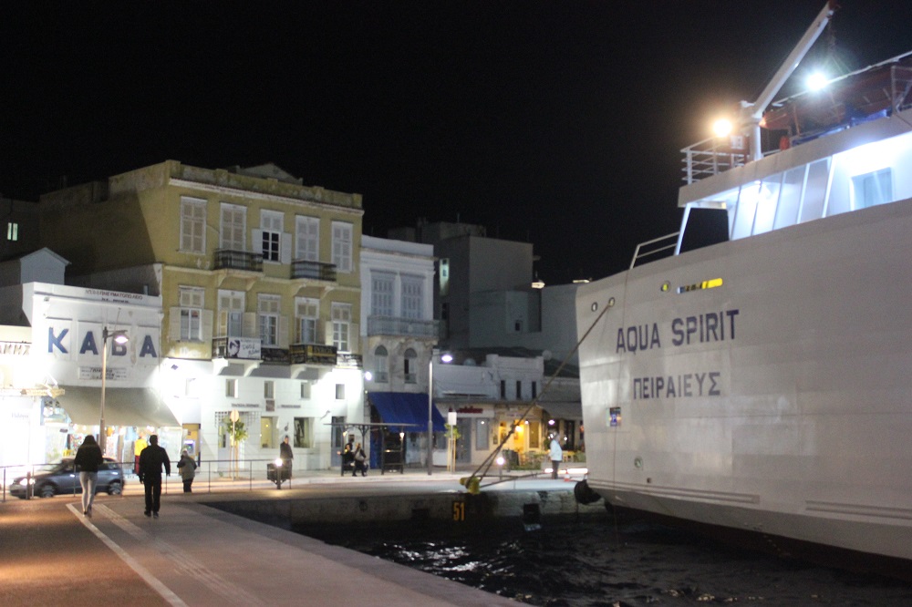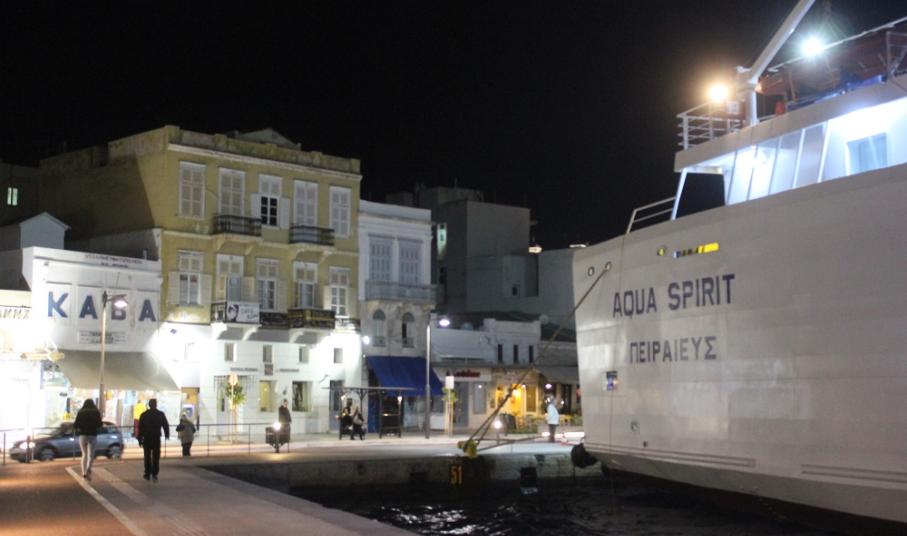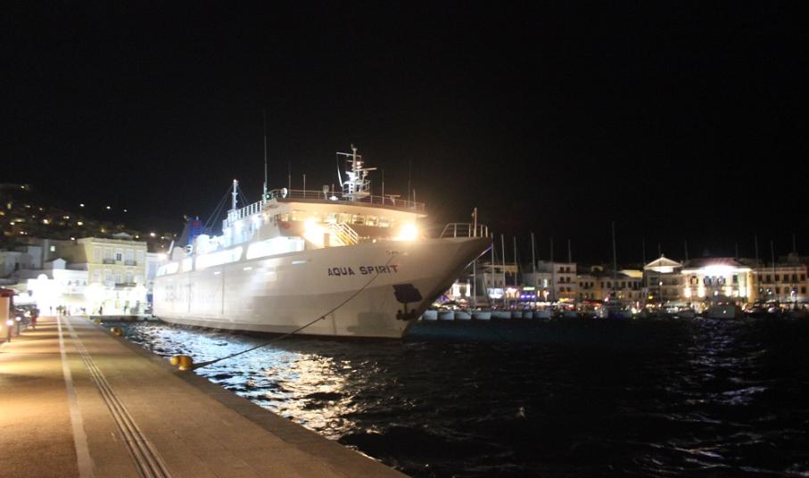 “Παραφωνία” στη γενική εικόνα των σκαφών και των ιστιοπλοϊκών που έχουν προσεγγίσει στο κατάλληλο τμήμα του λιμένα της Ερμούπολης αποτελεί η πρόσδεση του πλοίου Aqua Spirit σήμερα το βράδυ, το οποίο και θα παραμείνει έως και το πρωί της Τρίτης, οπότε και θα εκτελέσει το επόμενο δρομολόγιό του.