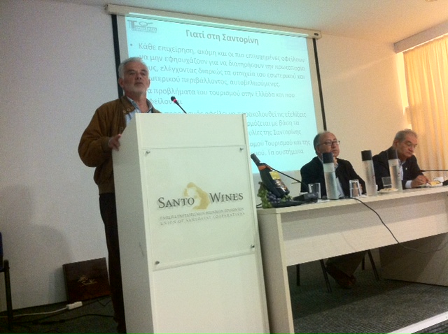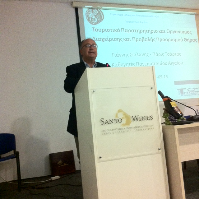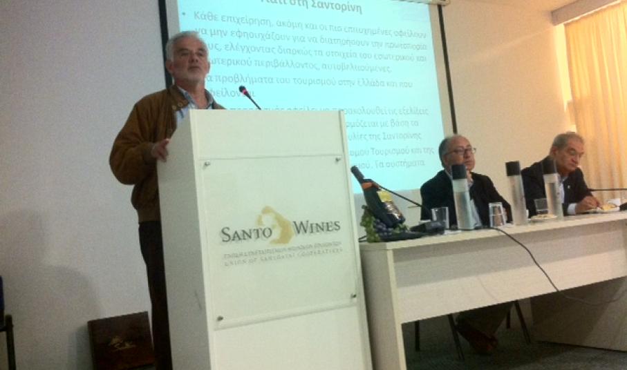 Η πρώτη παρουσίαση των στόχων και του περιεχομένου του Τουριστικού Παρατηρητηρίου και του Οργανισμού Διαχείρισης και Προβολής Προορισμού Σαντορίνης πραγματοποιήθηκε την Παρασκευή 6 Μαΐου στο συνεδριακό κέντρο της Santo Wines, στη Σαντορίνη.