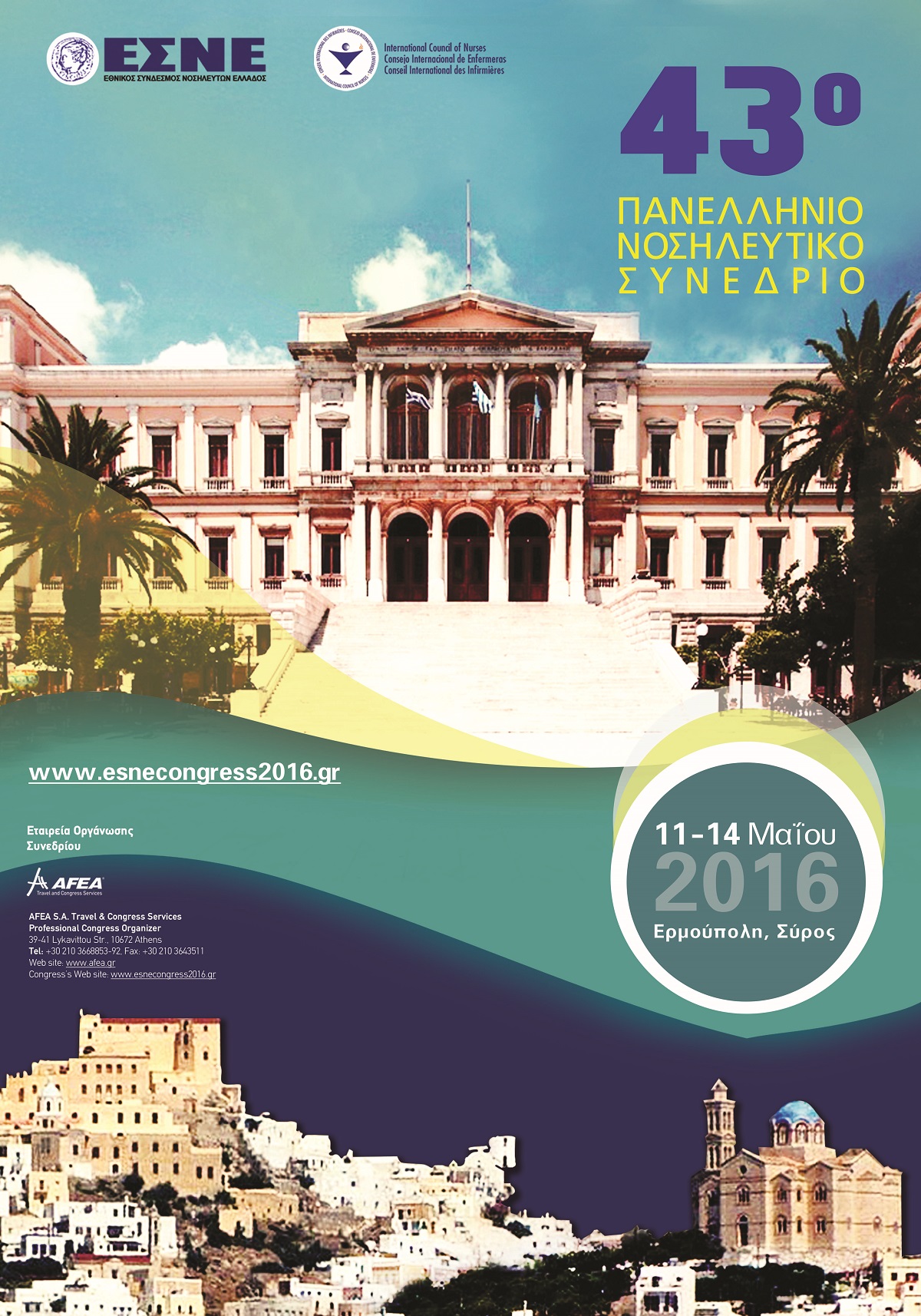 Αναγνωρίζοντας τις ανησυχίες των νοσηλευτών κι εκτιμώντας τις ανάγκες της κοινωνίας μας, ο Εθνικός Σύνδεσμος Νοσηλευτών Ελλάδος (ΕΣΝΕ) διοργανώνει στην Ερμούπολη της Σύρου το 43ο Πανελλήνιο Συνέδριό του, το οποίο σαν στόχο έχει να ενημερώσει, να εκπαιδεύσει και να εφοδιάσει τους σύγχρονους νοσηλευτές με γνώσεις και εμπειρίες, ώστε να αντιμετωπίσουν αποτελεσματικά τις καθημερινές προκλήσεις στον χώρο εργασίας τους.